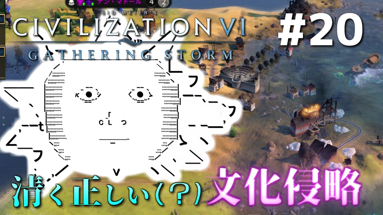 やる夫が初心者2人に迫られてCivilization6:Gathering Stormをプレイするようです<br><br>第19回→<a href="https://www.nicovideo.jp/watch/sm35681836" class="watch">sm35681836</a> 第21回(最終回)→<a href="https://www.nicovideo.jp/watch/sm35765252" class="watch">sm35765252</a><br><span style="color: #262626;">Civ6プレイ動画リスト:</span><a href="https://www.nicovideo.jp/mylist/65446881" target="_blank" rel="noopener">mylist/65446881</a><br><br>使用しているMODはこちら→<a href="https://twitter.com/proffesor2sk/status/1125363126168240130" target="_blank" rel="noopener nofollow">https://twitter.com/proffesor2sk/status/1125363126168240130</a><br><br>使わせていただいた素材サイト<br>効果音:「効果音辞典」「効果音ラボ」<br>フォント:「M+」「装甲明朝」「たぬき油性マジック」「しねキャプション」<br>やる実のCV:さとうささら(CeVIO)<br /><br><span style="color: #cc0000;">Youtubeチャンネル:<a href="https://www.youtube.com/channel/UCIgzloQ_KfcUN_AcvlxtDdg" target="_blank" rel="noopener nofollow">https://www.youtube.com/channel/UCIgzloQ_KfcUN_AcvlxtDdg</a></span><br><span style="color: #0000ff;">Twitter:<a href="https://twitter.com/proffesor2sk" target="_blank" rel="noopener nofollow">https://twitter.com/proffesor2sk</a></span><br>※その他のプレイ講座はこちら:<a href="https://www.nicovideo.jp/mylist/34307950" target="_blank" rel="noopener">mylist/34307950</a>