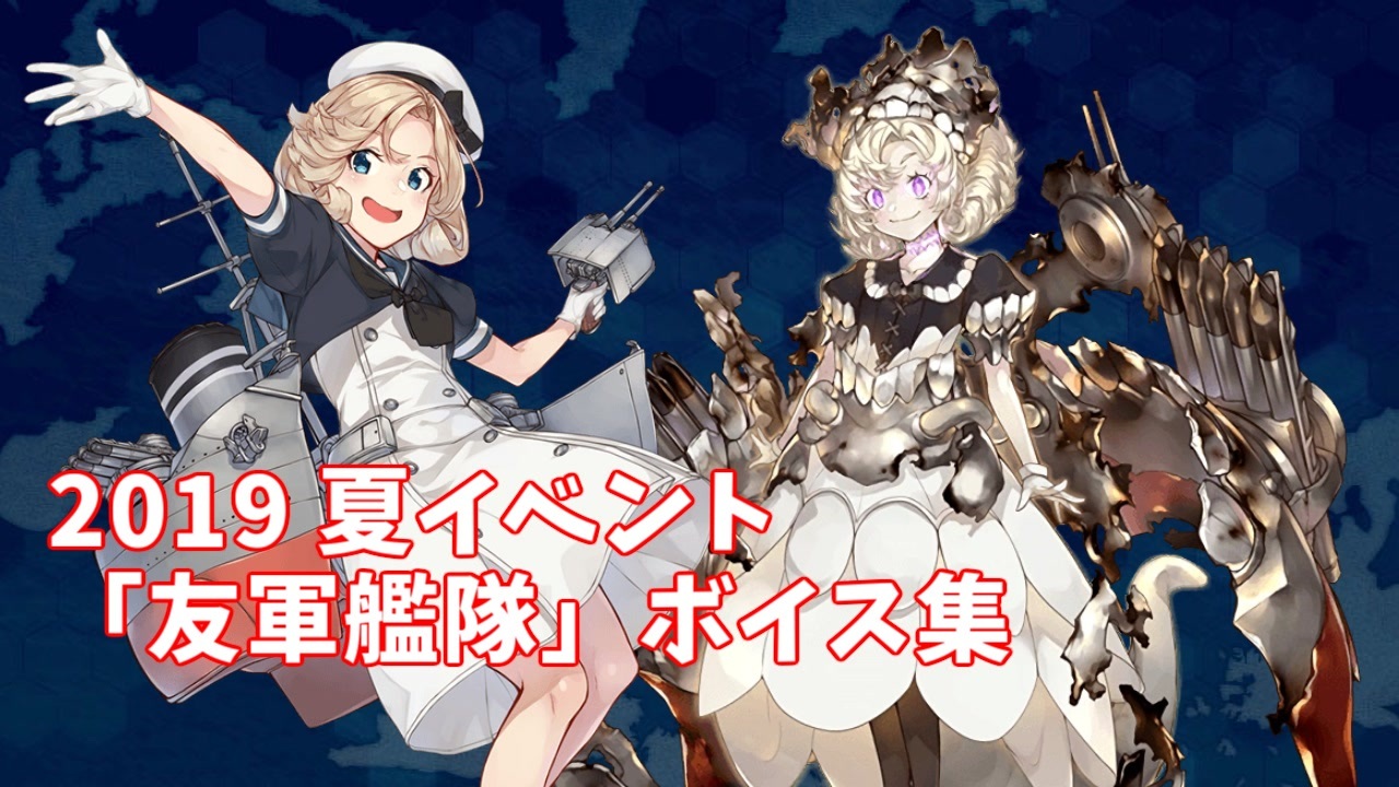 2019春イベント【欧州方面反撃作戦 発動!「シングル作戦」】の、E1~E3各作戦海域の友軍艦隊「戦域現着」ボイス集です。<br>「新規ボイスを含む友軍艦隊」を優先して収録しており、旧ボイスの友軍艦隊や、同じボイスの組み合わせは収録していません。<br><br>以前のイベントの友軍艦隊ボイスはこちら→<br>2018冬(<a href="https://www.nicovideo.jp/watch/sm32842752" class="watch">sm32842752</a>) 2018秋(<a href="https://www.nicovideo.jp/watch/sm33888536" class="watch">sm33888536</a>) 2019冬(<a href="https://www.nicovideo.jp/watch/sm34473276" class="watch">sm34473276</a>) 2019春(<a href="https://www.nicovideo.jp/watch/sm35308697" class="watch">sm35308697</a>)<br><br><a href="#" class="seekTime" data-seekTime="00:04" onclick="seekNicoPlayer('#00:04'); return false;">#00:04</a> E-1 戦域現着ボイス<br><a href="#" class="seekTime" data-seekTime="01:09" onclick="seekNicoPlayer('#01:09'); return false;">#01:09</a> E-2 戦域現着ボイス(野分以外は既存ボイスでした)<br><a href="#" class="seekTime" data-seekTime="01:24" onclick="seekNicoPlayer('#01:24'); return false;">#01:24</a> E-3 戦域現着ボイス<br><br>前|2019 夏イベント「シングル作戦」追加ボイス集 (8/31アップデート) <a href="https://www.nicovideo.jp/watch/sm35622153" class="watch">sm35622153</a><br><strong>次|2019「秋ボイス」「欧州方面作戦お疲れ様でした!」「欧州作戦とは関係ない」ボイス集 (9/30アップデート) </strong><a href="https://www.nicovideo.jp/watch/sm35761035" class="watch">sm35761035</a><br>艦これ追加ボイス集 マイリスト(<a href="https://www.nicovideo.jp/mylist/40513442" target="_blank" rel="noopener">mylist/40513442</a>)<br>シリーズ (<a href="https://www.nicovideo.jp/series/34200" target="_blank" rel="noopener">series/34200</a>)