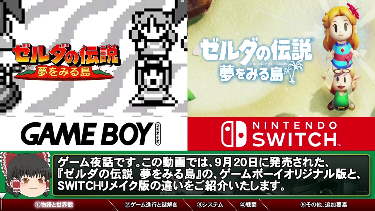 今回は新作ゲーム紹介動画(不定期更新)の第5回です。<br><br>普段は、毎回ひとつのゲームを取り上げ、3つのテーマから解説&考察しております。<br>【前編】は毎月1日・15日更新、【後編】は制作状況に応じて更新致します。<br><br><span style="color: #ff0000;"><strong>【訂正とお詫び】</strong></span><br><span style="color: #ff0000; font-size: 14px;"><strong>②番でお話している、石板がフクロウになったことや、ヒント増加は、</strong></span><br><span style="color: #ff0000;"><strong>『ゼルダの伝説 夢をみる島DX』からとのことでした。<br>DXはプレイしたことがなかったため、私の認識不足でした。<br>大変失礼いたしましたm(__)m</strong></span><br><br>■youtubeはこちら <a href="https://youtu.be/10KZXUl6ZhQ" target="_blank" rel="noopener nofollow">https://youtu.be/10KZXUl6ZhQ</a><br>■告知用のツイッター <a href="https://twitter.com/gameyawa" target="_blank" rel="noopener nofollow">https://twitter.com/gameyawa</a><br><br>■ゲーム夜話マイリスト <a href="https://www.nicovideo.jp/mylist/56973971" target="_blank" rel="noopener">mylist/56973971</a><br><span style="color: #000000; font-size: 13px;">■ゲーム夜話特別編マイリスト <a href="https://www.nicovideo.jp/mylist/65104419" target="_blank" rel="noopener">mylist/65104419</a></span>