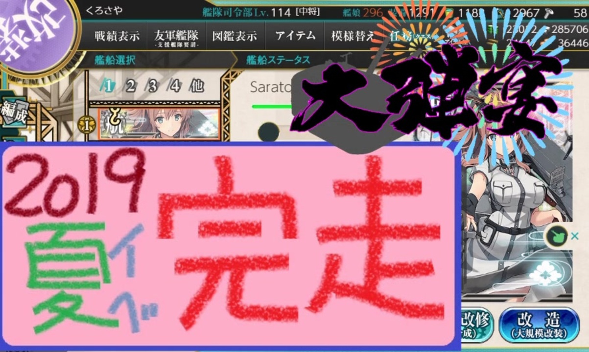 無事イベント完走できました!!<br>本当にお疲れ様でした!!<br><br><span style="font-size: 13px;">企画PV→<a href="https://www.nicovideo.jp/watch/sm35583577" class="watch">sm35583577</a></span><br>ルール解説動画→<a href="https://www.nicovideo.jp/watch/sm35611917" class="watch">sm35611917</a><br><span style="color: #262626; font-size: 13px;">ドラフト結果PV</span><span style="font-size: 13px;">→<a href="https://www.nicovideo.jp/watch/sm35659559" class="watch">sm35659559</a></span><br><br>企画参加者一覧<br>まうんと提督→<span style="color: #006699; font-size: 14px;"><a href="https://www.nicovideo.jp/user/31698725" target="_blank" rel="noopener">user/31698725</a></span><br>サーテン提督→<span style="color: #006699; font-size: 14px;"><a href="https://www.nicovideo.jp/user/7388332" target="_blank" rel="noopener">user/7388332</a></span><br>あかみづ提督→<span style="color: #006699; font-size: 14px;"><a href="https://www.nicovideo.jp/user/1675210" target="_blank" rel="noopener">user/1675210</a></span><br>うーちゃん提督→<span style="color: #006699; font-size: 14px;"><a href="https://www.nicovideo.jp/user/1510252" target="_blank" rel="noopener">user/1510252</a></span><br>ブルヌイ提督→<span style="color: #006699; font-size: 14px;"><a href="https://www.nicovideo.jp/user/82517499" target="_blank" rel="noopener">user/82517499</a></span><br><br><span style="color: #333333; font-size: 13px;">前回→</span><a href="https://www.nicovideo.jp/watch/sm35728885" class="watch">sm35728885</a> <span style="color: #333333; font-size: 13px;">次回→</span><a href="https://www.nicovideo.jp/watch/sm35772598" class="watch">sm35772598</a><br><span style="color: #333333; font-size: 13px;">大弾宴マイリス→(</span><span style="font-size: 13px;">mylist/</span>66345260<span style="color: #333333; font-size: 13px;">) マイリス飛べません…なんで?<br><br>ほっぽちゃんを嫁艦にしたくてマイリス(</span><a href="https://www.nicovideo.jp/mylist/54549037" target="_blank" rel="noopener">mylist/54549037</a><span style="color: #333333; font-size: 13px;">) <br><br>その他実況パート1リンク→(</span><a href="https://www.nicovideo.jp/mylist/53283958" target="_blank" rel="noopener">mylist/53283958</a><span style="color: #333333; font-size: 13px;">) <br>Twitterやってます!→@kuro38game</span>