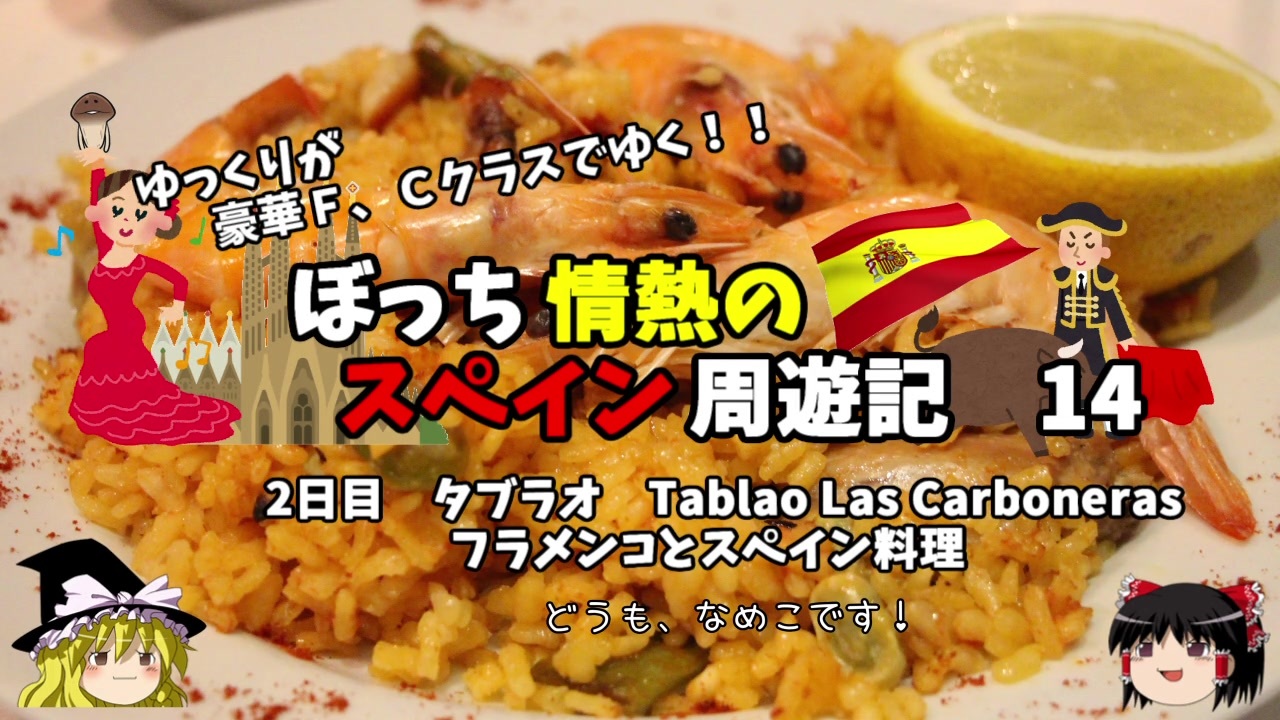 <span style="color: #ff0000; font-size: medium;"><u>※Youtubeで1話分、先行配信中 </u></span><br><span style="color: #0000ff; font-size: medium;"> <a href="http://www.youtube.com/c/なめこのぼっち旅" target="_blank" rel="noopener nofollow">http://www.youtube.com/c/なめこのぼっち旅</a></span> <br><br><br>夜の部、タブラオで夕食を<br>食べながらフラメンコを鑑賞します!<br><br><span style="color: #ff0000;">コミュニティー→co2910020</span><br><br> twitter→<a href="https://twitter.com/ryontan" target="_blank" rel="noopener nofollow">https://twitter.com/ryontan</a><br><br><a href="https://www.nicovideo.jp/watch/sm35703924" class="watch">sm35703924</a>←前回 <span style="color: #ff0000;">次回 第15話→</span><a href="https://www.nicovideo.jp/watch/sm35772147" class="watch">sm35772147</a><br><br>解説・雑談系→<a href="https://www.nicovideo.jp/mylist/63171869" target="_blank" rel="noopener">mylist/63171869</a><br>今作 スペイン周遊記→<a href="https://www.nicovideo.jp/mylist/64537827" target="_blank" rel="noopener">mylist/64537827</a><br>前作 韓国トルコ旅行記→<a href="https://www.nicovideo.jp/mylist/63654428" target="_blank" rel="noopener">mylist/63654428</a><br>車中泊旅行記→<a href="https://www.nicovideo.jp/mylist/54706524" target="_blank" rel="noopener">mylist/54706524</a><br>久米島(沖縄)旅行記→<a href="https://www.nicovideo.jp/mylist/63059251" target="_blank" rel="noopener">mylist/63059251</a><br>イギリスタイ旅行記→<a href="https://www.nicovideo.jp/mylist/60044833" target="_blank" rel="noopener">mylist/60044833</a><br>クルーズ旅行記→<a href="https://www.nicovideo.jp/mylist/57397685" target="_blank" rel="noopener">mylist/57397685</a><br>ドイツ周遊記→<a href="https://www.nicovideo.jp/mylist/54938346" target="_blank" rel="noopener">mylist/54938346</a><br>北海道旅行記→<a href="https://www.nicovideo.jp/mylist/52618057" target="_blank" rel="noopener">mylist/52618057</a><br>アメリカ横断記→<a href="https://www.nicovideo.jp/mylist/48621785" target="_blank" rel="noopener">mylist/48621785</a><br>イタリア周遊記→<a href="https://www.nicovideo.jp/mylist/45763559" target="_blank" rel="noopener">mylist/45763559</a><br>NY旅行記→<a href="https://www.nicovideo.jp/mylist/44343854" target="_blank" rel="noopener">mylist/44343854</a>