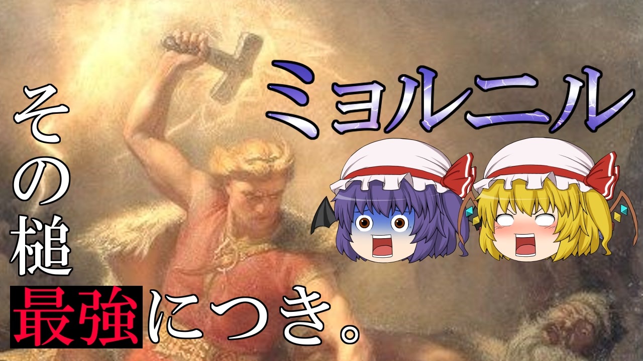 <span style="font-size: 14px;">【ファンタジー武器をゆっくり解説】ミョルニル<br><br>ファンタジー世界のアイテム達が幻想郷入り!<br>第二十三回は「ミョルニル」の解説です。<br><br>前回「聖槍(ロンギヌスの槍)」 </span><a href="https://www.nicovideo.jp/watch/sm35515080" class="watch">sm35515080</a><br><span style="font-size: 14px;">次回「アスクレピオスの杖」 </span><a href="https://www.nicovideo.jp/watch/sm36262896" class="watch">sm36262896</a><span style="font-size: 14px;"> </span><br><br><span style="color: #000000; font-size: 14px;">第一回から </span><span style="color: #006699; font-size: 14px;"><a href="https://www.nicovideo.jp/watch/sm32118085" class="watch">sm32118085</a></span><span style="color: #000000; font-size: 14px;"> </span><br><br><span style="font-size: 14px;">動画で参考にした資料</span><br><a href="https://regular-ch.hatenablog.com/entry/2019/10/01/182149" target="_blank" rel="noopener nofollow">https://regular-ch.hatenablog.com/entry/2019/10/01/182149</a><br><a href="https://regular-ch.hatenablog.com/entry/2019/10/03/184244" target="_blank" rel="noopener nofollow">https://regular-ch.hatenablog.com/entry/2019/10/03/184244</a><br><a href="https://regular-ch.hatenablog.com/entry/2019/10/04/190859" target="_blank" rel="noopener nofollow">https://regular-ch.hatenablog.com/entry/2019/10/04/190859</a><br><a href="https://regular-ch.hatenablog.com/entry/2019/10/09/190852" target="_blank" rel="noopener nofollow">https://regular-ch.hatenablog.com/entry/2019/10/09/190852</a><br />※現在活動再開に向けて準備中です。<br> ご支援を頂ければ制作の励みになります。<br> <a href="https://doneru.jp/reg-yukkuri" target="_blank" rel="noopener nofollow">https://doneru.jp/reg-yukkuri</a><br><br>他の動画はコチラからどうぞ!<br><a href="https://www.nicovideo.jp/series/325541" target="_blank" rel="noopener nofollow">https://www.nicovideo.jp/series/325541</a><br><br>うp主ブログ<br><a href="https://regular-ch.hatenablog.com/" target="_blank" rel="noopener nofollow">https://regular-ch.hatenablog.com/</a><br>※更新停止中<br><br><span style="font-size: 14px;">うp主ツイッター</span><br><span style="color: #006699; font-size: 14px;"><a href="https://twitter.com/8257R?lang=ja" target="_blank" rel="noopener nofollow">https://twitter.com/8257R?lang=ja</a></span>