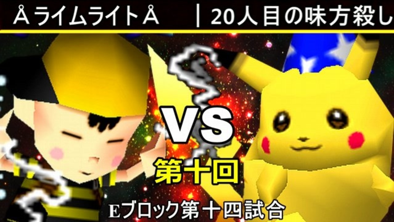 ライムが勝ったら脇役A、味方殺しが勝ったら味方殺しがA<br>※どちらが勝つかアンケ結果(Twitter調べ) <br>ÅライムライトÅ(NE) 59% VS 20人目の味方殺し(PI) 41%<br><br><span style="color: #0000ff; font-size: 13px;"><u>※64スマブラCPUトナメ実況wiki</u></span><span style="color: #0000ff; font-size: 13px;">→</span> <a href="https://wiki3.jp/cpu_64" target="_blank" rel="noopener nofollow">https://wiki3.jp/cpu_64</a><br><br><span style="color: #ff0000; font-size: 24px;"><strong>次→</strong></span>【<a href="https://www.nicovideo.jp/watch/sm35756928" class="watch">sm35756928</a>】※毎日投稿<br><br>前【<a href="https://www.nicovideo.jp/watch/sm35748117" class="watch">sm35748117</a>】 <span style="color: #000000; font-size: 13px;">Eブロック第一試合【</span><span style="color: #006699; font-size: 14px;"><a href="https://www.nicovideo.jp/watch/sm35307744" class="watch">sm35307744</a></span><span style="color: #000000; font-size: 13px;">】 </span>Aブロック第一試合【<a href="https://www.nicovideo.jp/watch/sm35254266" class="watch">sm35254266</a>】 <br><span style="font-size: 14px;">第十回選手紹介動画【</span><span style="color: #006699; font-size: 14px;"><a href="https://www.nicovideo.jp/watch/sm35240933" class="watch">sm35240933</a></span><span style="font-size: 14px;">】</span><br>第十回マイリスト【<a href="https://www.nicovideo.jp/mylist/65788927" target="_blank" rel="noopener">mylist/65788927</a>】<br>64スマブラCPUトナメ実況part1まとめ【<a href="https://www.nicovideo.jp/mylist/60846861" target="_blank" rel="noopener">mylist/60846861</a>】<br>その他シリーズ【<a href="https://www.nicovideo.jp/mylist/12965027" target="_blank" rel="noopener">mylist/12965027</a>】<br><br><span style="color: #00bfff; font-size: 13px;"><strong>Twitter</strong></span>【<a href="https://twitter.com/niconicopppppp" target="_blank" rel="noopener nofollow">https://twitter.com/niconicopppppp</a> 】<br><span style="color: #ff4500; font-size: 13px;"><strong>チャンネル</strong></span>【<a href="https://ch.nicovideo.jp/p-desu" target="_blank" rel="noopener">ch.nicovideo.jp/p-desu</a>】