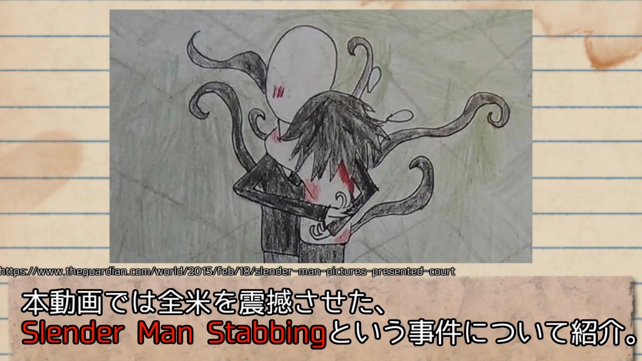 2014年5月31日、アメリカ合衆国ウィスコンシン州で発生した事件。12歳の少女2人が同い年の少女を包丁で19回刺した。2人はどうして親友を殺そうとしたのか。<br>本動画では<strong>Slender Man Stabbing</strong>と呼ばれるこの怪事件をざっくりと解説します。<br>おまけとして、Wikipediaの歩き方も紹介。<br>誤情報の指摘や次回作への要望などがあればコメントいただけると幸いです。<br><br>YouTube: <a href="https://youtu.be/wm7TaThmD1Q" target="_blank" rel="noopener nofollow">https://youtu.be/wm7TaThmD1Q</a><br>参考文献・コメント返信 (2019年10月14日、少しだけ更新): <a href="https://isolated-hyakunin-isshu.blogspot.com/2019/10/yukkuri-slenderman-stabbing.html" target="_blank" rel="noopener nofollow">https://isolated-hyakunin-isshu.blogspot.com/2019/10/yukkuri-slenderman-stabbing.html</a><br><strong>2019年10月25日にABCニュースで被害者とのインタビューが放映されるそうです。</strong><br><br>エリサ・ラム怪死事件 (<a href="https://www.nicovideo.jp/watch/sm35377985" class="watch">sm35377985</a>) < <a href="https://www.nicovideo.jp/mylist/66580776" target="_blank" rel="noopener">mylist/66580776</a> > 映画になったあの事件 (<a href="https://www.nicovideo.jp/watch/sm35791802" class="watch">sm35791802</a>)<br><br>何度も見直したはずなのに誤植が……。