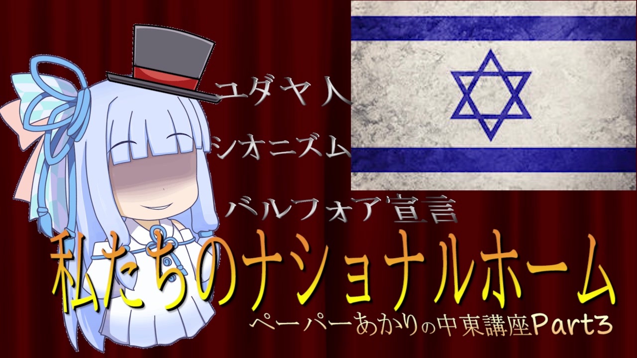 1.日本語歌詞付きBGMは使わないようにしました。<br>2.文字が見にくいという指摘があったので改善しました。<br>3.動画時間が30分と滅茶苦茶長くなってしまいました。<br>4.誤字脱字チェックが甘いですが許してください。<br><br>0.中東の語源→<span style="color: #006699; font-size: 14px;"><a href="https://www.nicovideo.jp/watch/sm35451681" class="watch">sm35451681</a></span><br>1.アラブ首長国連邦→<span style="color: #006699; font-size: 14px;"><a href="https://www.nicovideo.jp/watch/sm35490112" class="watch">sm35490112</a></span><br>2.サウジアラビア ハーシム家→<a href="https://www.nicovideo.jp/watch/sm35542960" class="watch">sm35542960</a><br>3.シオニズム バルフォア宣言→ここ<br>4(次回).大戦間のパレスチナ ヒトラー→10/30予定<br><br>ペーパーあかりの中東講座リスト→<a href="https://www.nicovideo.jp/series/50745?ref=my_series" target="_blank" rel="noopener nofollow">https://www.nicovideo.jp/series/50745?ref=my_series</a><br />今までの投稿物→<a href="https://www.nicovideo.jp/mylist/65441272" target="_blank" rel="noopener nofollow">https://www.nicovideo.jp/mylist/65441272</a><br>