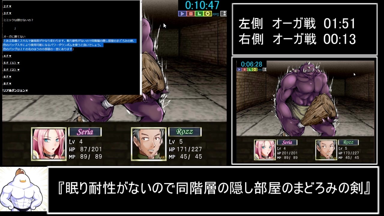 と56分2秒です<br><br>半額セールまでに投稿を間に合わせようとしたけど無理でした(9月17日まで)<br><br>計測開始地点 NewGameを押してから<br>計測終了地点 エンディング後の「セーブをしますか?」が出たタイミング<br><br><a href="https://www.nicovideo.jp/watch/sm32706121" class="watch">sm32706121</a><span style="color: #000000; font-size: 14px;"> ←前に走った次回作のRTA(リリテイルズ)<br>↑今と違うアカウントです(前世)</span><br><span style="font-size: 13px;"><a href="https://www.nicovideo.jp/mylist/65525280" target="_blank" rel="noopener">mylist/65525280</a></span><br><span style="color: #000000; font-size: 14px;">次パート → </span><span style="font-size: 13px;"><a href="https://www.nicovideo.jp/watch/sm35802526" class="watch">sm35802526</a></span><br><br><span style="color: #000000; font-size: 14px;">コミュ→ </span><span style="color: #006699; font-size: 14px;">co1583367</span><br><br><span style="color: #006699;">Q.</span><span style="font-size: 13px;">ゲーム音おおきくない?<br>A.すまぬのじゃ…次partから頑張る</span>