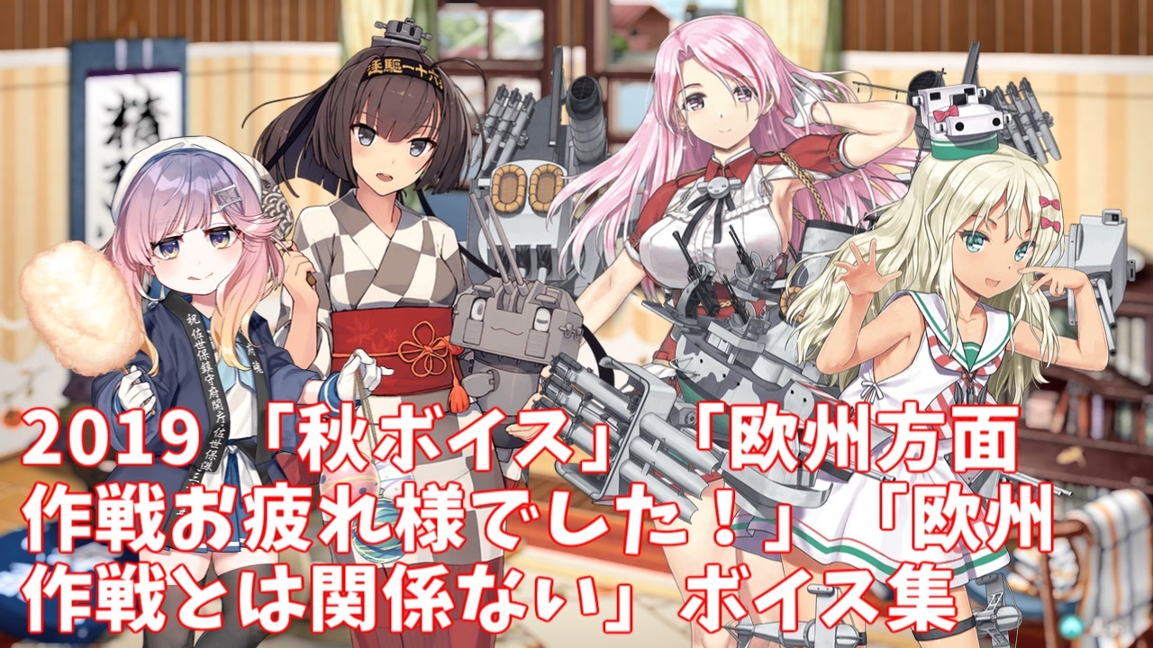 23隻の新規追加の「秋ボイス」と、<br>「欧州方面作戦お疲れ様でした!」ボイス、「欧州作戦とは関係ない期間限定ボイス」集です。<br><br>限定ボイス 図鑑No.順<br>(朝潮 大潮 満潮 荒潮 PrinzEugen 野分 秋月 Warspite 藤波 ArkRoyal Janus 岸波 <br>GambierBay 日進 峯雲 八丈 石垣 L.d.S.D.d.Abruzzi G.Garibaldi Fletcher Colorado 御蔵 Grecale)<br><br>新規絵(対馬)<br><br>前|2019 夏イベント「友軍艦隊」ボイス集 (9/20アップデート) <a href="https://www.nicovideo.jp/watch/sm35726839" class="watch">sm35726839</a><br><strong>次|朝霜改二 追加ボイス&2019「秋刀魚」「秋の味覚」「鰯」「ハロウィン」ボイス集 (10/25アップデート)</strong> <a href="https://www.nicovideo.jp/watch/sm35871572" class="watch">sm35871572</a><br><br>艦これ追加ボイス集 マイリスト(<a href="https://www.nicovideo.jp/mylist/40513442" target="_blank" rel="noopener">mylist/40513442</a>)<br>シリーズ (<a href="https://www.nicovideo.jp/series/34200" target="_blank" rel="noopener">series/34200</a>)