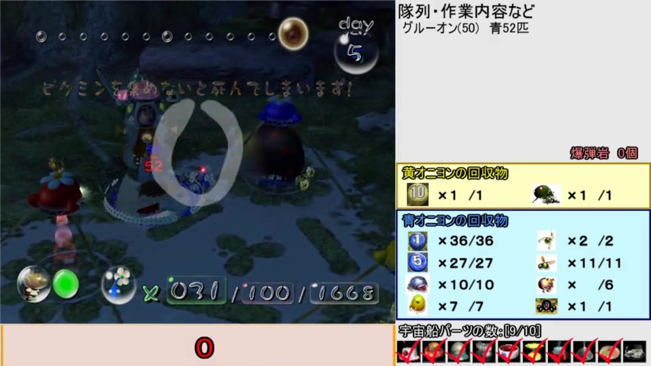 5日目開始から終了まで<br><br>この動画では、6日でクリアしつつ原生生物やペレットも含めて「全回収」することを<br>目的としています。(ただし2日目のオタマは除く)<br>そのため、「最速」は一切目指していません。ご理解をお願いいたします。<br><br>今回は、無事に達成しました。改善できる箇所はありますが、目的は達成したので更新はしません。<br>ないと信じたいですが、もし回収物やカウントに間違いがありましたら、ご指摘をお願いいたします。<br><br>最初のマッサージマシンへの橋をかけさせるあたりからやり直しました。<br>基本的なルートは、ジルコニウム付近の物の運搬開始あたりまではVer.4(前回の動画の後半)とほぼ同じです。<br>追記回数:累計134012回(5日目全体:71369回、0:48あたりから:26883回)<br><br>※コガネモチに関しては、探しても全く見つからなかったこと、<br> Pikipediaの該当ページが修正されていたことから、「いない」ということで進めました。<br><br>6日目→<a href="https://www.nicovideo.jp/watch/sm36166144" class="watch">sm36166144</a> <br><br><br>旧5日目→<a href="https://www.nicovideo.jp/watch/sm33978296" class="watch">sm33978296</a><br>旧5日目(ver.4)と今回(ver.5)の比較→<a href="https://www.nicovideo.jp/watch/sm35812245" class="watch">sm35812245</a><br><br>4日目(達成済み)→<a href="https://www.nicovideo.jp/watch/sm33199985" class="watch">sm33199985</a>