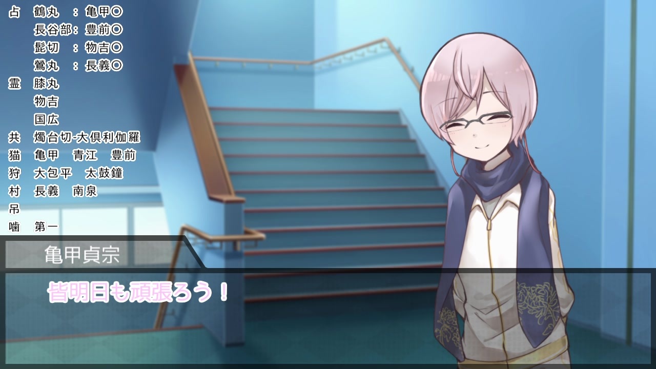今回は思慮深い議論ができました。<br>伊達組と愉快な本丸の仲間達の人狼、第5弾です。<br><strong>配役:村1/占2/霊2/狩1/猫1/共2/狼4/狂2/狐2</strong><br><br>・亀甲のセリフ読みづらんい→次回以降直します。今回は声だけ聞いてあげてください。<br>・親の新作がうれしいので多分にリスペクトしてます。<br><br>Part4初日→<a href="https://www.nicovideo.jp/watch/sm35522324" class="watch">sm35522324</a><br><a href="https://www.nicovideo.jp/mylist/65368586" target="_blank" rel="noopener">mylist/65368586</a>|<span style="font-size: 16px;">3日目→<a href="https://www.nicovideo.jp/watch/sm35804716" class="watch">sm35804716</a></span><br><br />だてぐみじんろう:<a href="https://www.nicovideo.jp/series/1107" target="_blank" rel="noopener">series/1107</a><br>→考察、感想をTwitterでつぶやくときは<strong>「#だてぐみじんろう」</strong>をどうぞ!私が喜びます。<br>ジョジョ卓:<a href="https://www.nicovideo.jp/series/29049" target="_blank" rel="noopener">series/29049</a><br>ダイマ動画:<a href="https://www.nicovideo.jp/series/29054" target="_blank" rel="noopener">series/29054</a><br>無人島開発:<a href="https://www.nicovideo.jp/series/112224" target="_blank" rel="noopener">series/112224</a><br>解説動画:<a href="https://www.nicovideo.jp/series/179736" target="_blank" rel="noopener">series/179736</a>