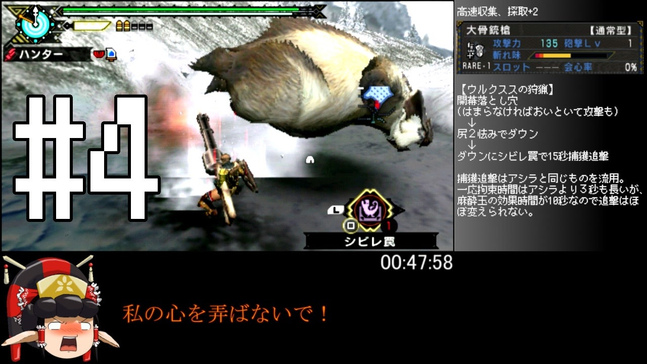 飛び廻れよウサキック!<br>ほら世界に虹かけたら 明日はウサピース<br>かじり倒せ<span style="color: #000000; font-size: 13px;">ウサキック!<br>さあ地球に穴開けよう 餅ついてお月様に 届くまでウサキック!</span><br><br><a href="https://www.nicovideo.jp/watch/sm35799858" class="watch">sm35799858</a><span style="color: #000000; font-size: 14px;">≪前〔</span><a href="https://www.nicovideo.jp/mylist/66652890" target="_blank" rel="noopener">mylist/66652890</a><span style="color: #000000; font-size: 14px;">〕次≫</span><a href="https://www.nicovideo.jp/watch/sm35800113" class="watch">sm35800113</a><br><span style="color: #000000; font-size: 14px;">(part1リンク:</span><span style="color: #006699; font-size: 14px;"><a href="https://www.nicovideo.jp/mylist/58485024" target="_blank" rel="noopener">mylist/58485024</a></span><span style="color: #000000; font-size: 14px;">)</span><br><br><br>【環境】:PlayStationTV(海外版PSVitaTV),DUALSHOCK4<br>【レギュレーション】<br>・ゲーム開始「はい」~月下雷鳴後ムービーのCAPCOMロゴ を計測<br>・DLC導入禁止<br>・チートおよび他ROMとの通信禁止<br>・大タル爆弾およびそのGの使用禁止