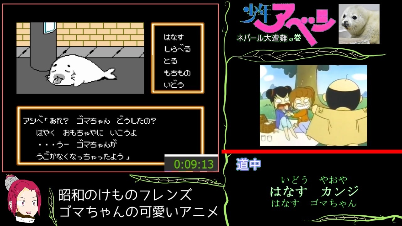 約13ヶ月前に投稿した森下裕美氏原作のリアルタイムアタック動画(<a href="https://www.nicovideo.jp/watch/sm33792708" class="watch">sm33792708</a>)に<br>ゆっくり編集を加えたものです。<br><br>現在「GO!GO!ゴマちゃん」と言うタイトルでアニメ放送されているので<br>今のうちに投稿したいと思ったのです。<br><br>少年アシベって<br>・可愛い動物がでてくる。<br>・ギスギス展開が(ほとんど)ない(毒成分はある)。<br>・尾崎由香さんが出演。<br>と、けものフレンズに似ている点が多いですね。<br><br>今は漫画アクションで「青少年アシベ」連載中だそうです。<br><br>今回は過激なネタは控えめのはずです。<br><br>31分内に投稿できそうなRTAはこれで最後なので<br>次回からはまた続きものとなりそうですね。<br><br><span style="color: #000000; font-size: 13px;">マイリスト </span><span style="color: #006699; font-size: 13px;"><a href="https://www.nicovideo.jp/mylist/60410734" target="_blank" rel="noopener">mylist/60410734</a></span><br><span style="color: #000000; font-size: 14px;">Part1リンク </span><span style="color: #006699; font-size: 14px;"><a href="https://www.nicovideo.jp/mylist/34191346" target="_blank" rel="noopener">mylist/34191346</a></span><br><br>めし太郎の質問箱です <a href="https://peing.net/ja/shamojiotoko" target="_blank" rel="noopener nofollow">https://peing.net/ja/shamojiotoko</a> <br><br><span style="color: #000000; font-size: 13px;">ガーコンギニガコンギニデステアロ様、リブナニッカ+様、ちゅうでん様、bon様、ひろひろ様、潤兵様、狼藉者様、コメスキー様、ルーク様、java様、江田島様、JAPANweb様、Lui様、ねねこ・こねねこ様、ツール連携様、村下孝蔵様、両々様、おじさん、ジョルジュ早乙女様、もけけ様、くらば様、蓬莱山輝夜の中の人様、@(´・ω・`)様、アストラ様、森下裕美様、銀河鉄道様、punipuni様、匿名様、おひさまさんさん様、なまこボム様、謎肉様、tatibana様、なちょ様、アリサ・C・フェミルナ様、STYNGA様、blim様、yukiseto様、STYNGA様、pon様、ぴのっち様、</span>フィル様、<span style="color: #000000; font-size: 13px;">宣伝ありがとうございました。</span>