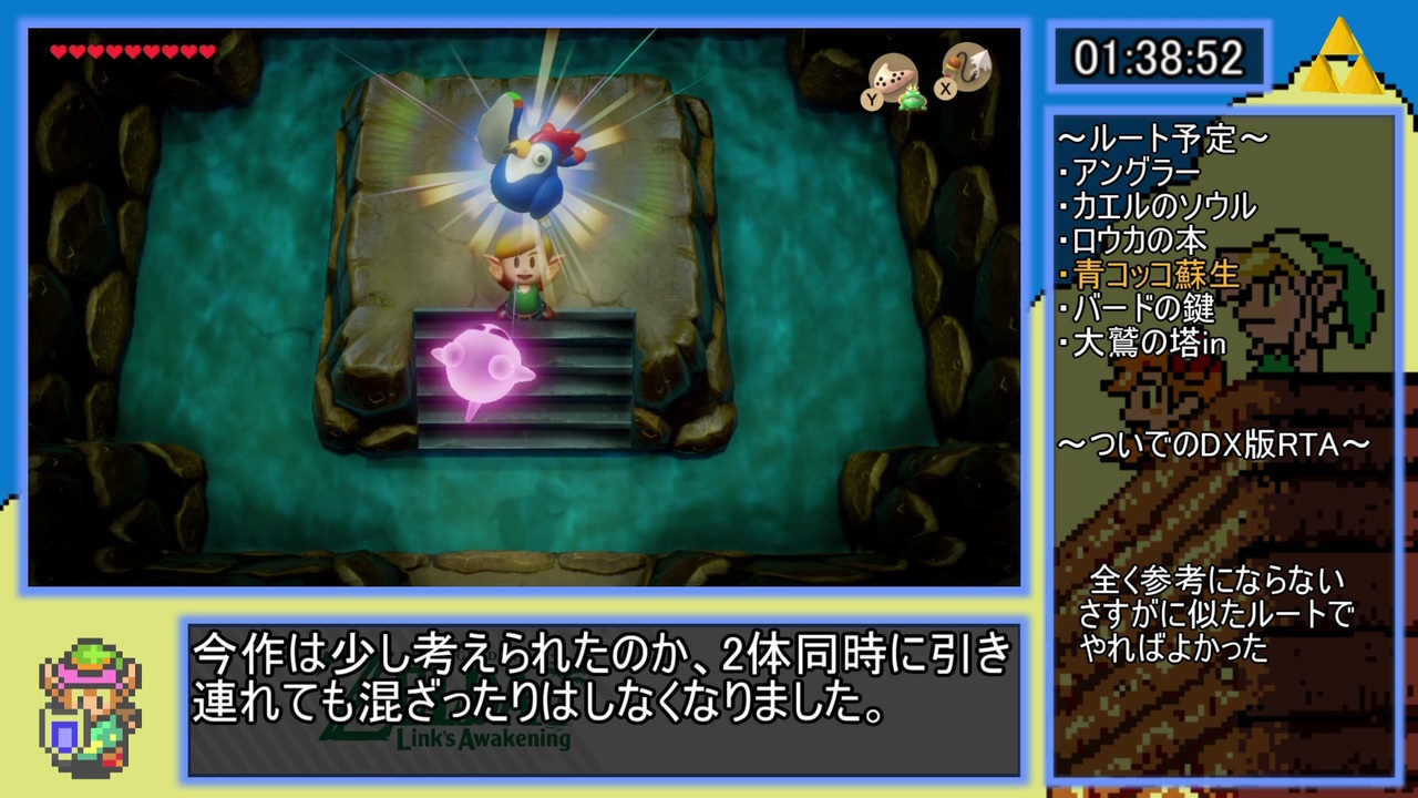 <span style="font-size: 14px;">連続再生要望があったのでマイリストも作りましたが、シリーズでも連続再生できます。<br>pcなら「コメントリスト」右の「動画リスト」からシリーズを開けば出てきます。</span><br><br>話題性薄れてきた頃なので初投稿です。<br>ネタは詰めていません。純粋なRTA動画としてお楽しみください。<br><br>夢をみる島リメイク発売おめでとうございます。記念にルート仕上げて速攻RTAしました。<br>ルールはまだ制定されていないのでAny%と書いておきます。決まり次第編集します。<br><br>~計測範囲~<br>スタート:名前を決めて「OK」を押した瞬間<br>ストップ:ラスボス戦で出現する階段を上った後のロード(ブラックアウト)<br><br><span style="color: #000000; font-size: 13px;">※動画内では触れていませんが、参考資料としてDX版の夢島RTA(NoOoB/WW)も流しています。</span><br><br>Lv.6→<a href="https://www.nicovideo.jp/watch/sm35767523" class="watch">sm35767523</a><br>Lv.8→<a href="https://www.nicovideo.jp/watch/sm35874374" class="watch">sm35874374</a><br><span style="color: #000000; font-size: 14px;">マイリスト→</span><span style="font-size: 14px;"><a href="https://www.nicovideo.jp/mylist/66662024" target="_blank" rel="noopener">mylist/66662024</a></span><br>シリーズ→<a href="https://www.nicovideo.jp/series/62099" target="_blank" rel="noopener">series/62099</a><br>無編集版(youtube)→<a href="https://www.youtube.com/watch?v=JseTgSbzw98&t=37s" target="_blank" rel="noopener nofollow">https://www.youtube.com/watch?v=JseTgSbzw98&t=37s</a><br><br>こうした方がいいかも、これできるよというコメントは大歓迎です。どんどん更新箇所指摘ください。<br>※ちょっと編集雑かもしれない。問題あったら言ってください