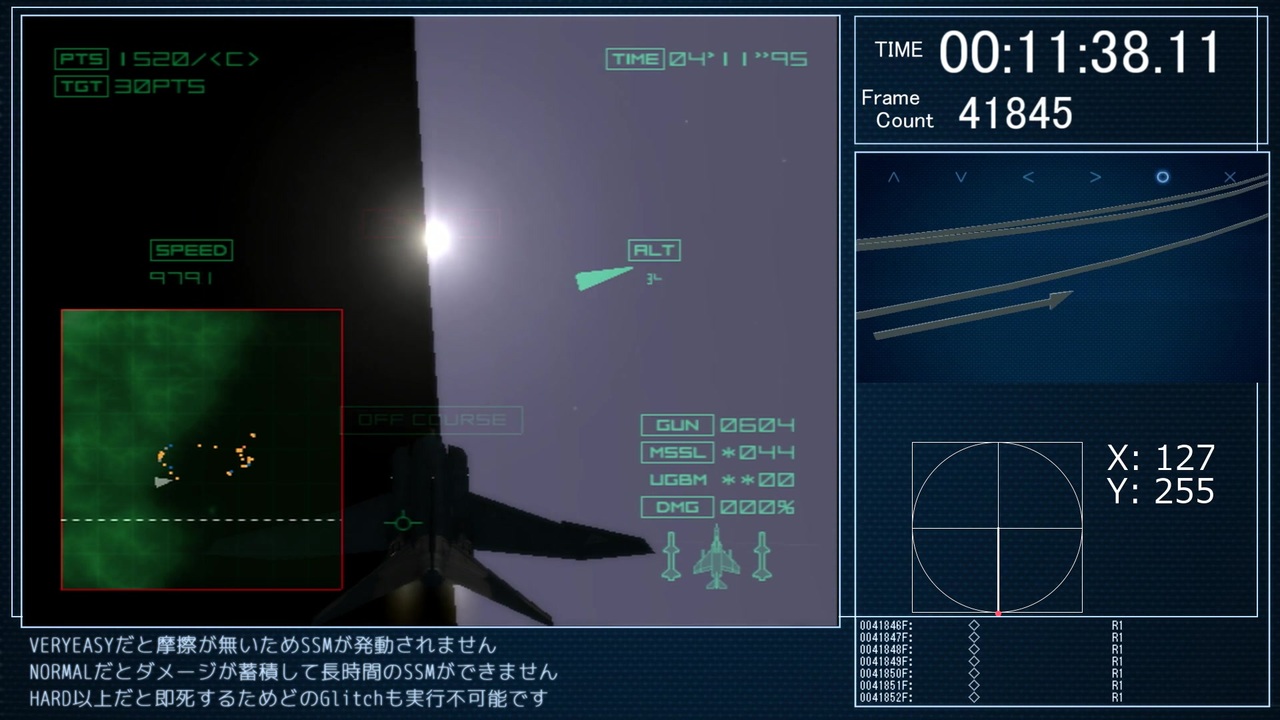 1年くらいかけて作っていたエースコンバット04最速クリアTASの完成版です。<br>WIP版から完全に作り直したため全ミッションでタイムは更新されています。<br>画面がたくさんあって忙しいですが、右側はおまけなので基本的に左側のメイン画面だけ見ていればOKです。<br><br>追記回数51869回<br><br><span style="color: #000000; font-size: 13px;">Part2</span>→<a href="https://www.nicovideo.jp/watch/sm35809747" class="watch">sm35809747</a><br><br><a href="https://www.nicovideo.jp/mylist/62144513" target="_blank" rel="noopener">mylist/62144513</a><br><br><span style="color: #000000; font-size: 14px;">youtube版 → </span><span style="color: #006699; font-size: 14px;"><a href="https://youtu.be/QYSv614QJeM" target="_blank" rel="noopener nofollow">https://youtu.be/QYSv614QJeM</a></span>