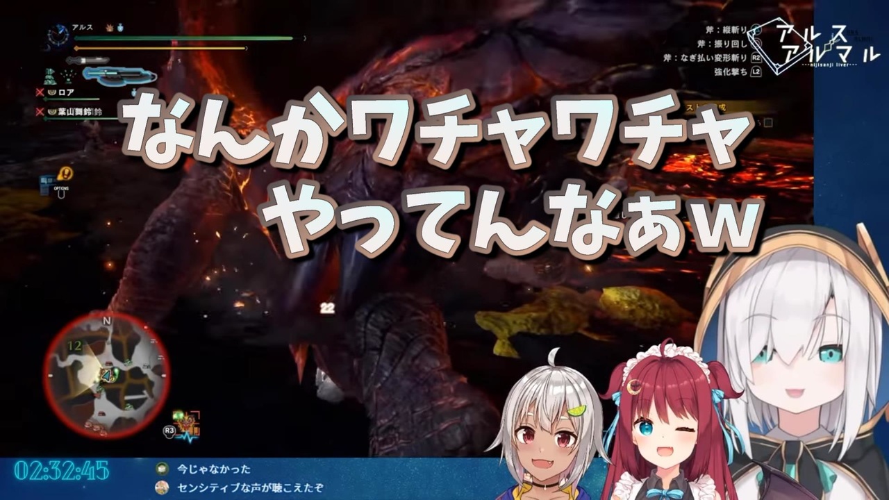 既に切り抜きいくつか上がってますが、どうしてもまとめたかった。<br>マルお姉ちゃんと姪っ子二人みたいでなごむコラボだった。<br><br>▽アーカイブ<br>【MHW】我をアイスボーンにつれてってなのだ!2【ロアルマルマリン】<br><a href="https://www.youtube.com/watch?v=MXH76HRfr2g" target="_blank" rel="noopener nofollow">https://www.youtube.com/watch?v=MXH76HRfr2g</a><br><br>【MHWコラボ】ロアちゃんと葉山ちゃんと古龍狩るでよ!【アルス・アルマル/にじさんじ】<br><a href="https://www.youtube.com/watch?v=IrfTsRsGPpQ" target="_blank" rel="noopener nofollow">https://www.youtube.com/watch?v=IrfTsRsGPpQ</a><br><br>【MHW】ロアっちゃんとマルちゃん正麺と古龍狩りにいくアルのだでよ!!!【葉山舞鈴/にじさんじ】<br><a href="https://www.youtube.com/watch?v=Epj8_ymvLpE" target="_blank" rel="noopener nofollow">https://www.youtube.com/watch?v=Epj8_ymvLpE</a><br><br>▽字幕ミス<br><a href="#" class="seekTime" data-seekTime="6:45" onclick="seekNicoPlayer('#6:45'); return false;">#6:45</a> ロア「捕まっちった」→「力尽きた」<br><br>ご指摘ありがとう。<br><br>▽YouTube版<br>字幕修正&追加してるのでよかったら見てください<br><a href="https://www.youtube.com/watch?v=lKIXfxPPv7U" target="_blank" rel="noopener nofollow">https://www.youtube.com/watch?v=lKIXfxPPv7U</a>