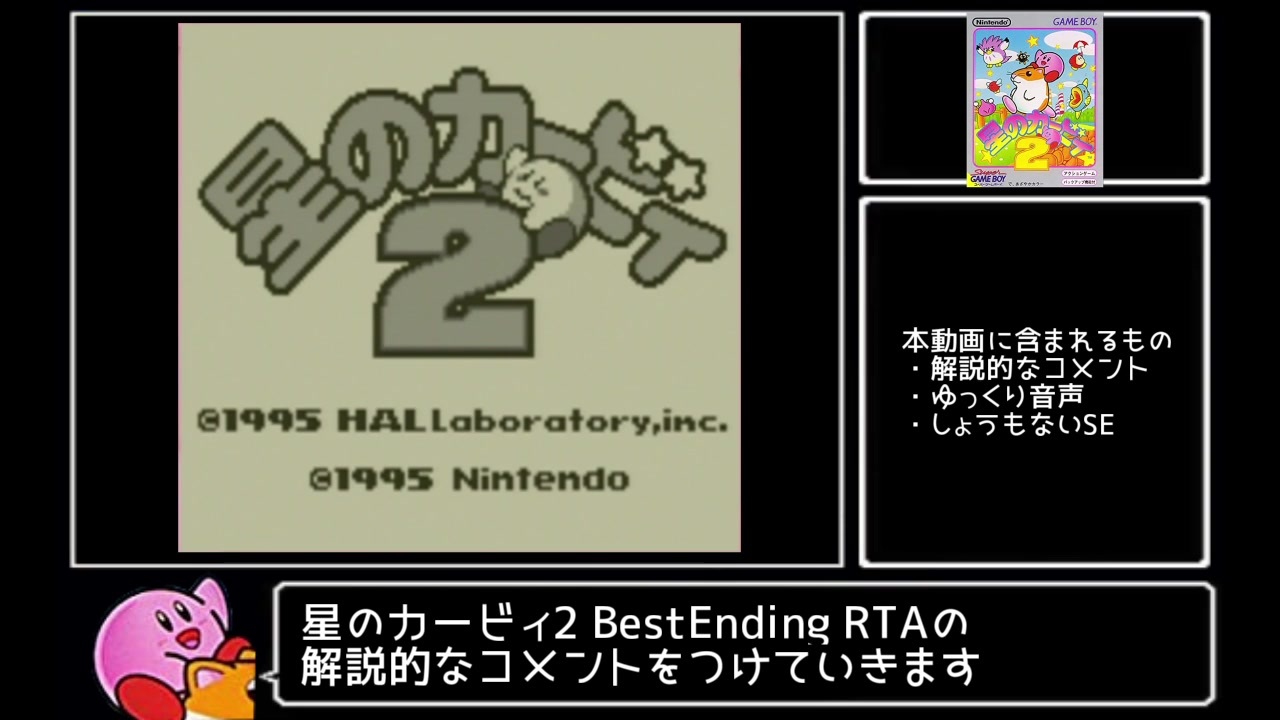 RiJOに間に合わせるつもりでした(2ヶ月以上のタイムロス)<br><br>2019/8/27 配信内(twitch)にて<br>42分台に届いて満足しました<br>追記:2022/12/19 WR抜かれました<br><br>・計測方法<br>ファイルセレクトで選択してからダークマターのHPを削りきるまで<br><br>・環境<br>Wii(カビコレ)<br><br>無編集版<br><a href="https://www.youtube.com/watch?v=3gwTcyvrLcM" target="_blank" rel="noopener nofollow">https://www.youtube.com/watch?v=3gwTcyvrLcM</a><br><br>リーダーボード<br><a href="https://www.speedrun.com/kdl2#Best_Ending" target="_blank" rel="noopener nofollow">https://www.speedrun.com/kdl2#Best_Ending</a><br><br>次→ <a href="https://www.nicovideo.jp/watch/sm35895425" class="watch">sm35895425</a><br><br>投稿したRTA解説part1まとめ<br><a href="https://www.nicovideo.jp/mylist/67368614" target="_blank" rel="noopener">mylist/67368614</a><br>