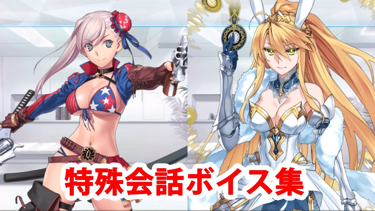 2019年8月14日~2019年8月26日の期間で実装された複数の特定サーヴァント所持時のマイルーム会話集です。<br>新規サーヴァントは期間限定イベント「見参! ラスベガス御前試合~水着剣豪七色勝負!」での実装分が対象です。<br>対象キャラのアイコンの元はWiki情報なので対象キャラの抜け・間違いのある可能性もあります。<br><br>【対象サーヴァント】<br>風魔小太郎 / 葛飾北斎 / 織田信長〔アヴェンジャー〕 / 宮本武蔵〔バーサーカー〕 / 刑部姫〔アーチャー〕<br>カーミラ〔ライダー〕 / 葛飾北斎〔セイバー〕 / アルトリア・ペンドラゴン〔ルーラー〕<br>謎のアルターエゴ・Λ(メルトリリス〔ランサー〕) / オキタ・J・ソウジ(沖田総司〔アサシン〕)<br><br>特殊会話ボイス集まとめ→<a href="https://www.nicovideo.jp/mylist/59802010" target="_blank" rel="noopener">mylist/59802010</a><br><br>YouTube版はこちら<br><a href="https://www.youtube.com/watch?v=zGwpSDwMmdg" target="_blank" rel="noopener nofollow">https://www.youtube.com/watch?v=zGwpSDwMmdg</a><br><br>投稿済ボイス集→<a href="https://www.nicovideo.jp/mylist/57873980" target="_blank" rel="noopener">mylist/57873980</a>