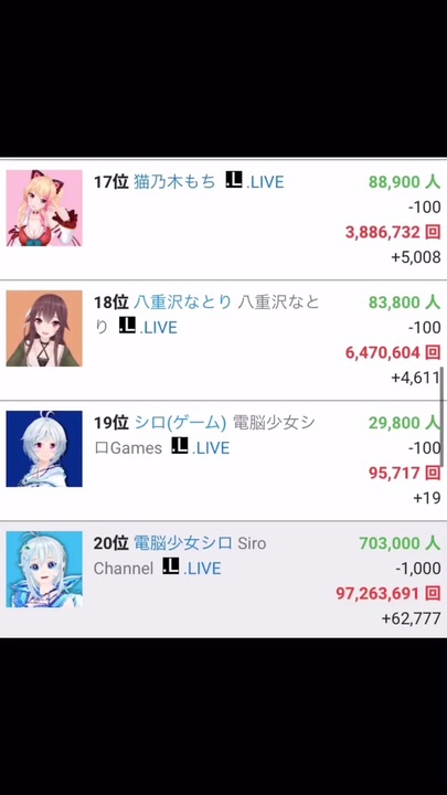 | 651 | 750位 | 16,134 | 158位 | エンターテイメント | 693位 | 15,501 | 1348位 | 133 | 3428位 | 20 | - | - |