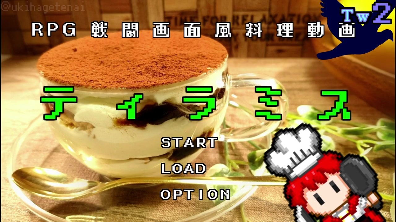 使うものと手順をなるべく減らしたした簡易ティラミスになります。<br>え?原価?それは食材の名前か何か?<br><br>※Twitter出張版第二弾と同じ動画です。2分20秒以内の制限があるので駆け足だぜ!<br><br><br>RPG戦闘風料理動画→ <span style="color: #006699; font-size: 13px;"><strong><a href="https://www.nicovideo.jp/mylist/62549316" target="_blank" rel="noopener">mylist/62549316</a></strong></span> <br>前作:アボカドグラタン <a href="https://www.nicovideo.jp/watch/sm35290346" class="watch">sm35290346</a><br><br>ブロマガで裏話やお借りした素材を公開しています→ <a href="https://ch.nicovideo.jp/article/ar1826620" target="_blank" rel="noopener">ar1826620</a><br><br>Twitter(よかったらフォローしてね)→ <span style="color: #006699;"><strong><a href="https://twitter.com/ukihagetenai" target="_blank" rel="noopener nofollow">https://twitter.com/ukihagetenai</a></strong></span><strong> </strong><br><br>※家で手軽に作れること前提のレシピなので、 既製品はバンバン使います <br>※レシピの自作発言とそのままレシピサイトとかに投稿しちゃうのは勘弁して(:3 」∠) <br>※まな板の上に道具を置くことがあります、本来不衛生なので真似しないで<br><br><br>だいたい毎週何かしら放送したいぜ<br>詳しくはコミュ→ <span style="color: #006699;">co3677869</span><br>