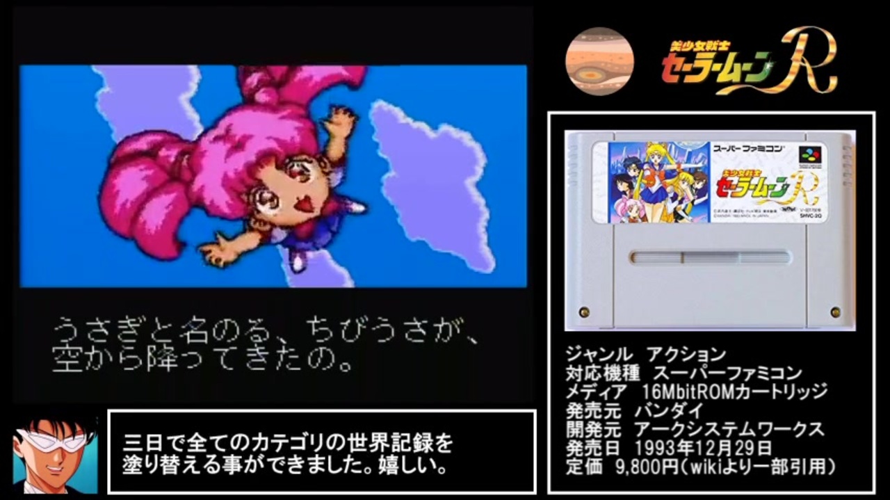 初動画制作&初投稿。よろしくお願いします。<br><br><span style="color: #000000; font-size: 14px;"><s>2019年10月29現在、Speedrun.com 上世界1位の記録です。</s></span><br>10月29日この動画を投稿後、カナダ兄貴の新記録が認証されて記録表に載りました。<br>世界二位お記録となります<br>次 <a href="https://www.nicovideo.jp/watch/sm35931323" class="watch">sm35931323</a><br><br>【10/31追記】<br>たくさんの再生やコメント、広告していただきありがとうございます!<br>おかげ様でモチベも沸いたので記録奪還しました 認証待ちです。<br>ところどころカテゴリとレギュレーションを間違えていますね…。<br>投稿前に何度も確認してるのに投稿してから気付くのなんでしょね。<br><br>プレイ環境:スーパーファミコン実機<br>カテゴリ:Any%Easy(難易度:やさしい)<br>計測開始:キャラクターを選択した瞬間<br>計測終了:二面ボス撃破後、ポーズを取った瞬間<br><br>【Speedrun.com 記録表】 <a href="https://www.speedrun.com/bssmr#Any" target="_blank" rel="noopener nofollow">https://www.speedrun.com/bssmr#Any</a><br>【走ったゲームリスト】 <a href="https://www.speedrun.com/user/Norishige710" target="_blank" rel="noopener nofollow">https://www.speedrun.com/user/Norishige710</a><br><br>動画をまとめてる場所<br>【Twitch】<a href="https://www.twitch.tv/norishige710" target="_blank" rel="noopener nofollow">https://www.twitch.tv/norishige710</a><br>【Youtube】<a href="https://www.youtube.com/playlist?list=PLzepSyxLIEpkYnwz2E1vNkOyRkKcGf4v9" target="_blank" rel="noopener nofollow">https://www.youtube.com/playlist?list=PLzepSyxLIEpkYnwz2E1vNkOyRkKcGf4v9</a>