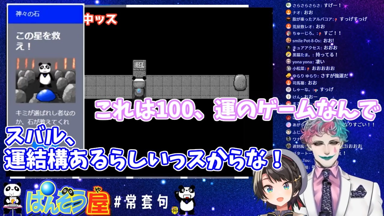 元動画:<span style="font-size: 16px;"><strong>【ぱんぞう屋】やるッス!!!!!【ゲスト:大空スバル】</strong></span><br><u><a href="https://www.youtube.com/watch?v=8CkDHTxJ01c" target="_blank" rel="noopener nofollow">https://www.youtube.com/watch?v=8CkDHTxJ01c</a></u><br><br><br><span style="font-size: 16px;"><strong>大空スバル(ホロライブ)</strong></span><br><strong>チャンネル</strong>:<u><a href="https://www.youtube.com/channel/UCvzGlP9oQwU--Y0r9id_jnA" target="_blank" rel="noopener nofollow">https://www.youtube.com/channel/UCvzGlP9oQwU--Y0r9id_jnA</a></u><br><strong>Twitter</strong>:<u><a href="https://twitter.com/oozorasubaru" target="_blank" rel="noopener nofollow">https://twitter.com/oozorasubaru</a></u><br><br><span style="font-size: 16px;"><strong>ジョー・力一(にじさんじ)</strong></span><br><strong>チャンネル</strong>:<u><a href="https://www.youtube.com/channel/UChUJbHiTVeGrSkTdBzVfNCQ" target="_blank" rel="noopener nofollow">https://www.youtube.com/channel/UChUJbHiTVeGrSkTdBzVfNCQ</a></u><br><strong>Twitter</strong>:<u><a href="https://twitter.com/JoeRikiichi" target="_blank" rel="noopener nofollow">https://twitter.com/JoeRikiichi</a></u>