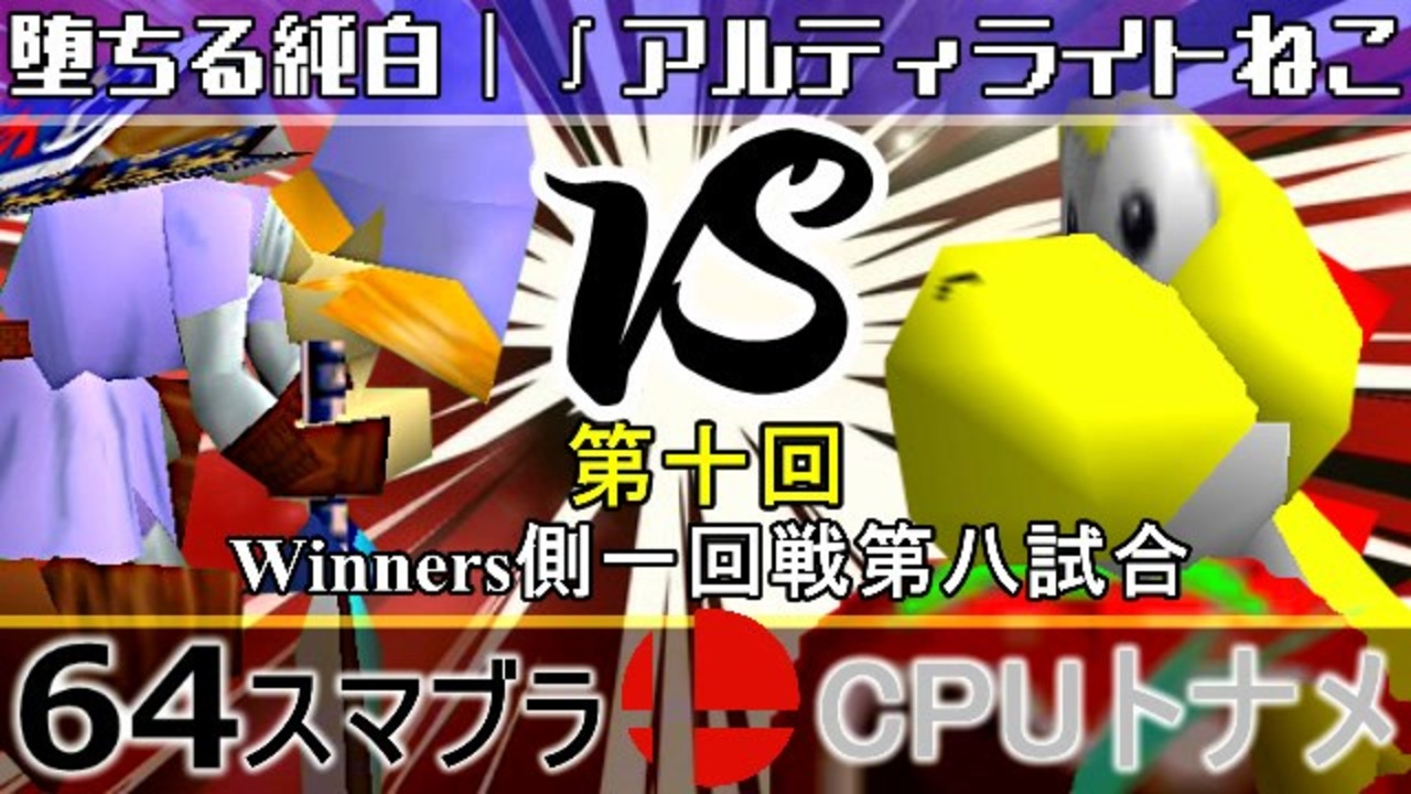 試されるセンザイ能力 vs 豪運ヨッシー<br>※どちらが勝つかアンケ結果(Twitter調べ) <br>堕ちる純白(LI) 39% VS ∫アルティライトねこ(YO) 61%<br><br><span style="color: #0000ff; font-size: 13px;"><u>※64スマブラCPUトナメ実況wiki</u></span><span style="color: #0000ff; font-size: 13px;">→</span> <a href="https://wiki3.jp/64cpu_P" target="_blank" rel="noopener nofollow">https://wiki3.jp/64cpu_P</a><br><br><span style="color: #ff0000; font-size: 24px;"><strong>次→</strong></span>【<a href="https://www.nicovideo.jp/watch/sm35908944" class="watch">sm35908944</a>】※毎日投稿<br><br>前【<a href="https://www.nicovideo.jp/watch/sm35898791" class="watch">sm35898791</a>】 Winners一回戦第一試合【<a href="https://www.nicovideo.jp/watch/sm35872182" class="watch">sm35872182</a>】 <span style="color: #000000; font-size: 13px;">予選</span>Aブロック第一試合【<a href="https://www.nicovideo.jp/watch/sm35254266" class="watch">sm35254266</a>】 <br><span style="font-size: 14px;">第十回選手紹介動画【</span><span style="color: #006699; font-size: 14px;"><a href="https://www.nicovideo.jp/watch/sm35240933" class="watch">sm35240933</a></span><span style="font-size: 14px;">】</span><br>第十回マイリスト【<a href="https://www.nicovideo.jp/mylist/65788927" target="_blank" rel="noopener">mylist/65788927</a>】<br>64スマブラCPUトナメ実況part1まとめ【<a href="https://www.nicovideo.jp/mylist/60846861" target="_blank" rel="noopener">mylist/60846861</a>】<br>その他シリーズ【<a href="https://www.nicovideo.jp/mylist/12965027" target="_blank" rel="noopener">mylist/12965027</a>】<br><br><span style="color: #00bfff; font-size: 13px;"><strong>Twitter</strong></span>【<a href="https://twitter.com/niconicopppppp" target="_blank" rel="noopener nofollow">https://twitter.com/niconicopppppp</a> 】<br><span style="color: #ff4500; font-size: 13px;"><strong>チャンネル</strong></span>【<a href="https://ch.nicovideo.jp/p-desu" target="_blank" rel="noopener">ch.nicovideo.jp/p-desu</a>】