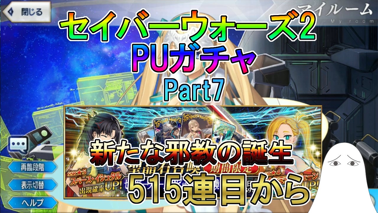 セイバーウォーズ2PUガチャ動画のPart7となります。<br>新たな邪教の誕生<br><br>動画についてリクエスト等ありましたらコメントやTwitter等にご連絡頂ければ可能な限り検討致します。<br>御用の際には下記アドレスまで宜しくお願いします。<br>連絡先メールアドレス → cecimesfr@gmail.com<br>Twitter → <a href="https://twitter.com/Ceci_startnow" target="_blank" rel="noopener nofollow">https://twitter.com/Ceci_startnow</a><br>今回の動画の音楽は「魔王魂様」「H/MIX GALLERY 様」「甘茶の音楽工房様」からお借りしています<br><br><span style="color: #111111;">前回の動画→</span><a href="https://www.nicovideo.jp/watch/sm35899946" class="watch">sm35899946</a><span style="color: #111111;"> 次回の動画→</span><a href="https://www.nicovideo.jp/watch/sm35911744" class="watch">sm35911744</a><br><u><a href="https://www.nicovideo.jp/mylist/60420393" target="_blank" rel="noopener">mylist/60420393</a></u>