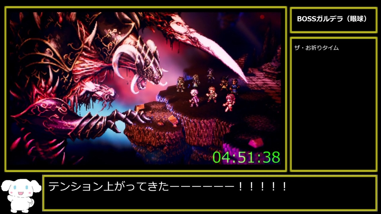 <span style="color: #000000; font-size: 14px;">目標であった5時間切りを達成することができたので記念動画にしました。<br>2019/10/12に達成。当時世界7位、日本2位の記録です。</span><br><br>ついに最終決戦!<br>最後までお付き合いいただきありがとうございました!<br><br><br><span style="color: #000000; font-size: 14px;">【計測区間】<br>スタート:NEW GAMEを選択後、主人公を選んで「はい」を選択した瞬間<br>ストップ:ガルデラを倒した後、ダイアログが出た瞬間にタイマーストップ</span><br><br><a href="https://www.nicovideo.jp/watch/sm35900285" class="watch">sm35900285</a><span style="color: #000000; font-size: 14px;">←前<br>マイリスト→</span><span style="color: #006699; font-size: 14px;"><a href="https://www.nicovideo.jp/mylist/66670530" target="_blank" rel="noopener">mylist/66670530</a></span><br><span style="color: #000000; font-size: 13px;">チャート(雑)→<a href="https://ch.nicovideo.jp/article/ar1834843" target="_blank" rel="noopener">ar1834843</a></span><br><span style="color: #000000; font-size: 14px;">解説無しタイマーのみ→</span><span style="color: #006699; font-size: 14px;"><a href="https://www.youtube.com/watch?v=oyQ3RGYdqjU" target="_blank" rel="noopener nofollow">https://www.youtube.com/watch?v=oyQ3RGYdqjU</a></span><br><br><span style="color: #000000; font-size: 14px;">©2018 SQUARE ENIX CO., LTD. All Rights Reserved.</span>