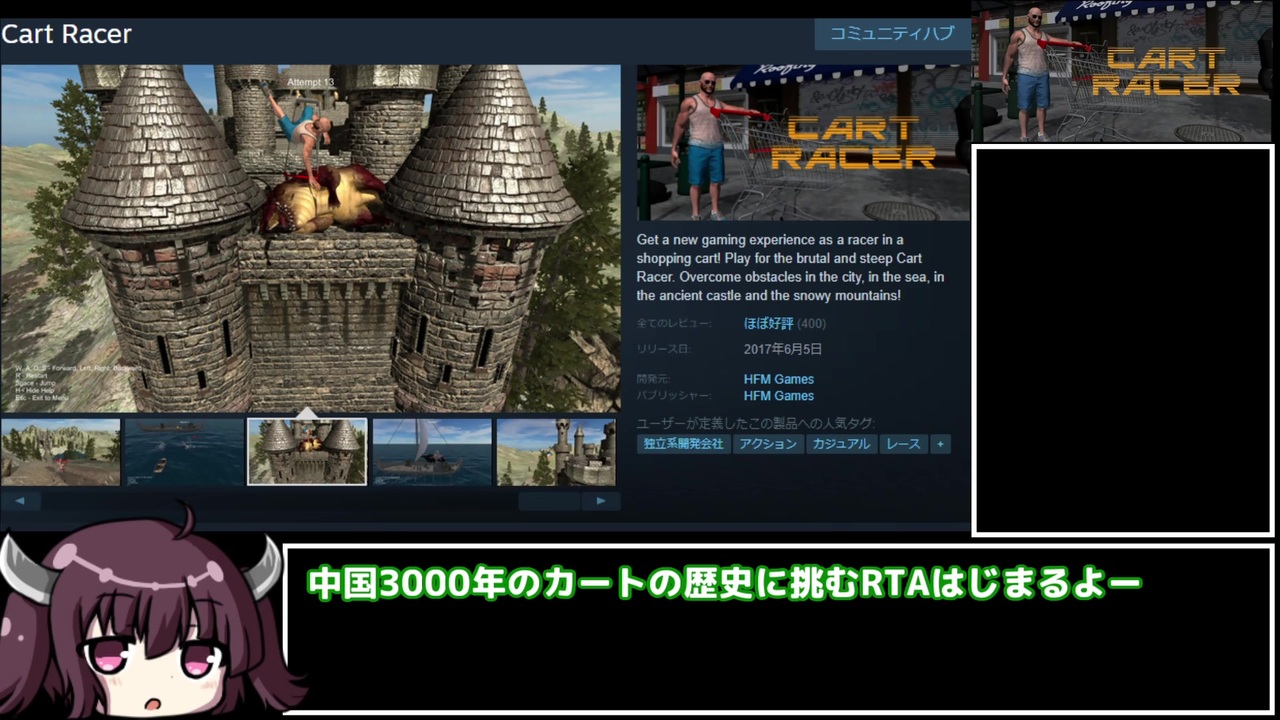 寒くなってきたので初投稿です。<br><br>参考文献<br>ゲーム概要:<a href="https://www.nicovideo.jp/watch/sm31722647" class="watch">sm31722647</a><br>ストアページ:<a href="https://store.steampowered.com/app/587420/Cart_Racer/" target="_blank" rel="noopener nofollow">https://store.steampowered.com/app/587420/Cart_Racer/</a><br>Cart_Racer RTAランキング:<a href="https://www.speedrun.com/cart_racer" target="_blank" rel="noopener nofollow">https://www.speedrun.com/cart_racer</a><br>たぶん現世界2位(bilibibli):<a href="https://www.bilibili.com/video/av51139414?from=search&seid=17173231462546501896" target="_blank" rel="noopener nofollow">https://www.bilibili.com/video/av51139414?from=search&seid=17173231462546501896</a><br>たぶん現世界3位(youtube):<a href="https://www.youtube.com/watch?v=90ubvanwp4M&t=22s" target="_blank" rel="noopener nofollow">https://www.youtube.com/watch?v=90ubvanwp4M&t=22s</a><br>ニコニコ走者の兄貴達:<a href="https://www.nicovideo.jp/watch/sm32017146" class="watch">sm32017146</a>, <a href="https://www.nicovideo.jp/watch/sm31922430" class="watch">sm31922430</a>, <a href="https://www.nicovideo.jp/watch/sm32219686" class="watch">sm32219686</a><br>Cart_Racer BGMまとめ(youtube):<a href="https://www.youtube.com/watch?v=ev2TimJbZWE&t=90s" target="_blank" rel="noopener nofollow">https://www.youtube.com/watch?v=ev2TimJbZWE&t=90s</a><br><br>RTAまとめ:<a href="https://www.nicovideo.jp/mylist/59984835" target="_blank" rel="noopener">mylist/59984835</a><br>twitter:@ClayardNico<br><br>GriPpA様 アストラ様 イノシシ様 ラウラ様 <br>yumegiwa様 yoo様 SOVP_____nicover様 <br>exam様 Rindow様 ちけぼ様 rokokoi様 <br>baka様 STR153様 アリサ・C・フェミルナ様 <br>ORSIS様 園木えま様 @JKinKYOTO様 CV様 <br>ayumu様 ななし様 hisaf@様 saifar様 <br>蓬莱様 perfectvision様 ゆ~ま様 <br>Strong様 Hallkey様 どくけしそう様 <a href="https://www.nicovideo.jp/watch/sm13869948" class="watch">sm13869948</a>様 <br>parin様 ずんどこ様 I3様 ウボァー様 <br>クロニケ様 しはぶき様 白刹(ハク)様 <br>ステキなコテハンください様 蝶番様 Nazz様 広告ありがとうございます。