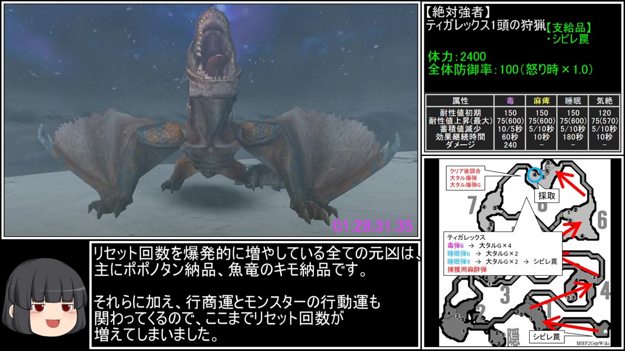 <span style="color: #000000; font-size: 14px;">ダイミョウザザミ ~ ティガレックス まで</span><br><br><a href="https://www.nicovideo.jp/watch/sm35891149" class="watch">sm35891149</a><span style="color: #000000; font-size: 14px;">←前 次→<a href="https://www.nicovideo.jp/watch/sm35955437" class="watch">sm35955437</a></span><br><br><br>既に編集がきつくなってきたマン_(:3 」∠)_<br><br>>前回のRTA動画に比べてゲーム音ちょっとうるさいな、ゆっくりボイス聞きにくい<br> part2は編集・エンコ終わってしまったのでそのまま投稿しちゃいました。<br> うるさいかもしれないですけどごめんね(´・ω・`)<br> 次回から音量もう少し下げます<br><br><br><br><span style="color: #000000; font-size: 14px;">RTAマイリスト→</span><span style="color: #006699; font-size: 14px;"><a href="https://www.nicovideo.jp/mylist/66811789" target="_blank" rel="noopener">mylist/66811789</a></span><br><span style="color: #000000; font-size: 13px;">配信時→ </span><span style="color: #006699; font-size: 14px;"><a href="https://youtu.be/uMCnHOQFNZU" target="_blank" rel="noopener nofollow">https://youtu.be/uMCnHOQFNZU</a></span>