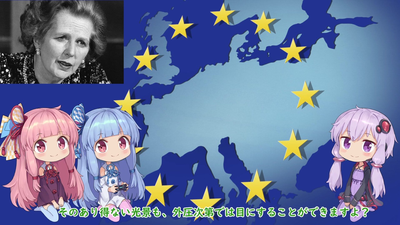 葵「サッチャー先輩、あまりに『ナショナみ』が深過ぎませんか?」<br>サッチャー「フォークランド紛争の時は、閣僚の男たちは怯えて領土奪還を渋ったのです。情けない!」<br><br>最後の余白は編集の不具合です。<br>茜「何かコメントでもあったら送ると喜ぶらしいで」<br><br>前回の動画ID: <a href="https://www.nicovideo.jp/watch/sm35874786" class="watch">sm35874786</a><br>次(Part 9.5): <a href="https://www.nicovideo.jp/watch/sm35972486" class="watch">sm35972486</a><br>次: <a href="https://www.nicovideo.jp/watch/sm36052848" class="watch">sm36052848</a><br><br>Part 1: <span style="color: #006699; font-size: 14px;"><a href="https://www.nicovideo.jp/watch/sm34684458" class="watch">sm34684458</a></span><br><br>リスト: <span style="color: #006699; font-size: 14px;"><a href="https://www.nicovideo.jp/mylist/66071401" target="_blank" rel="noopener">mylist/66071401</a></span><br><br>長めのご要望、ご感想は同時投稿で上げているYoutubeのコメント欄からもどうぞ。<br><a href="https://www.youtube.com/watch?v=yyDjn2TOT2c" target="_blank" rel="noopener nofollow">https://www.youtube.com/watch?v=yyDjn2TOT2c</a>