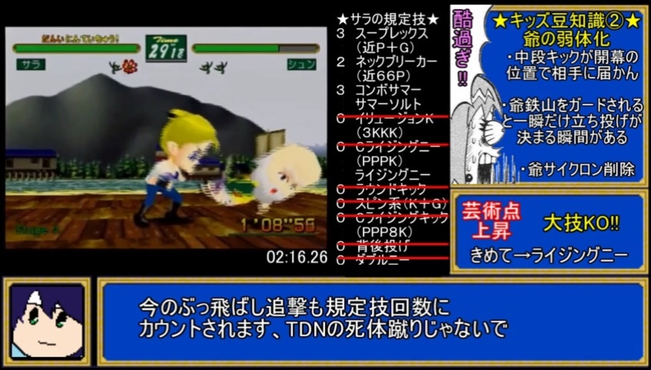 リアルキッズ時代にサターンで初めて新品で買ったゲームです。<br>プレイ環境:SS&純正コントローラー<br>録画環境 :GVーUSB2<br>※追記※<br>SARAをSARAHに訂正、ご指摘ありがとうございます。<br><span style="color: #000000; font-size: 13px;">沢山の広告ありがとうございます。</span><br><br>☆バーチャリミックス☆<br>8段RTA(AKIRA)→<a href="https://www.nicovideo.jp/watch/sm33045472" class="watch">sm33045472</a><br>8段RTA(JACKY)→<a href="https://www.nicovideo.jp/watch/sm34104944" class="watch">sm34104944</a><br><br>☆バーチャキッズ☆<br>コンボ動画①⇒<a href="https://www.nicovideo.jp/watch/sm23658176" class="watch">sm23658176</a><br>コンボ動画② AKIRA⇒<a href="https://www.nicovideo.jp/watch/sm33139361" class="watch">sm33139361</a><br>コンボ動画③(①の改良版)⇒<a href="https://www.nicovideo.jp/watch/sm38424973" class="watch">sm38424973</a><br>打ち上げからの追撃集⇒<a href="https://www.nicovideo.jp/watch/sm25419382" class="watch">sm25419382</a><br><br>ようつべ→<a href="https://youtu.be/h7ffgaqjZlE" target="_blank" rel="noopener nofollow">https://youtu.be/h7ffgaqjZlE</a><br><マイリスト><br>RTA(TA含む)まとめ動画⇒<a href="https://www.nicovideo.jp/mylist/57002794" target="_blank" rel="noopener">mylist/57002794</a><br>ゲーム・アニメ動画⇒<a href="https://www.nicovideo.jp/mylist/35620435" target="_blank" rel="noopener">mylist/35620435</a><br>Twitter→<span style="color: #3c4043; font-size: 14px;"><a href="https://twitter.com/ted_sion" target="_blank" rel="noopener nofollow">https://twitter.com/ted_sion</a></span>