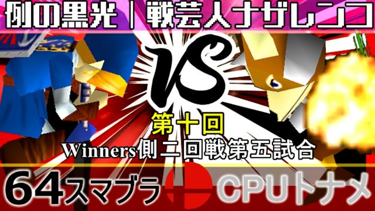例のぶち壊し vs Mr.アフォックス<br>※どちらが勝つかアンケ結果(Twitter調べ) <br>例の黒光(LI) 41% VS 戦芸人ナザレンコ(FO) 59%<br><br><span style="color: #0000ff; font-size: 13px;"><u>※64スマブラCPUトナメ実況wiki</u></span><span style="color: #0000ff; font-size: 13px;">→</span> <a href="https://wiki3.jp/64cpu_P" target="_blank" rel="noopener nofollow">https://wiki3.jp/64cpu_P</a><br><br><span style="color: #ff0000; font-size: 24px;"><strong>次→</strong></span>【<a href="https://www.nicovideo.jp/watch/sm35966327" class="watch">sm35966327</a>】※毎日投稿<br><br>前【<a href="https://www.nicovideo.jp/watch/sm35956564" class="watch">sm35956564</a>】 Winners一回戦第一試合【<a href="https://www.nicovideo.jp/watch/sm35872182" class="watch">sm35872182</a>】 <span style="color: #000000; font-size: 13px;">予選</span>Aブロック第一試合【<a href="https://www.nicovideo.jp/watch/sm35254266" class="watch">sm35254266</a>】 <br><span style="font-size: 14px;">第十回選手紹介動画【</span><span style="color: #006699; font-size: 14px;"><a href="https://www.nicovideo.jp/watch/sm35240933" class="watch">sm35240933</a></span><span style="font-size: 14px;">】</span><br>第十回マイリスト【<a href="https://www.nicovideo.jp/mylist/65788927" target="_blank" rel="noopener">mylist/65788927</a>】<br>64スマブラCPUトナメ実況part1まとめ【<a href="https://www.nicovideo.jp/mylist/60846861" target="_blank" rel="noopener">mylist/60846861</a>】<br>その他シリーズ【<a href="https://www.nicovideo.jp/mylist/12965027" target="_blank" rel="noopener">mylist/12965027</a>】<br><br><span style="color: #00bfff; font-size: 13px;"><strong>Twitter</strong></span>【<a href="https://twitter.com/niconicopppppp" target="_blank" rel="noopener nofollow">https://twitter.com/niconicopppppp</a> 】<br><span style="color: #ff4500; font-size: 13px;"><strong>チャンネル</strong></span>【<a href="https://ch.nicovideo.jp/p-desu" target="_blank" rel="noopener">ch.nicovideo.jp/p-desu</a>】