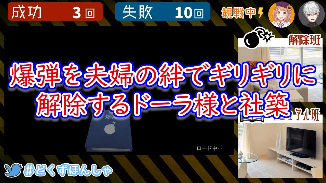 ド葛本社の夫婦の絆の前では爆弾など無意味なんだな~<br>余談だけどドーラ様がたまに一人称「私」になってるの結構すき<br><br>本家参考動画<br><a href="https://youtu.be/MEDZjRi9tas" target="_blank" rel="noopener nofollow">https://youtu.be/MEDZjRi9tas</a><br><br>参考チャンネル<br>・ドーラ<br><a href="https://www.youtube.com/channel/UC53UDnhAAYwvNO7j_2Ju1cQ" target="_blank" rel="noopener nofollow">https://www.youtube.com/channel/UC53UDnhAAYwvNO7j_2Ju1cQ</a><br>・葛葉<br><a href="https://www.youtube.com/channel/UCSFCh5NL4qXrAy9u-u2lX3g" target="_blank" rel="noopener nofollow">https://www.youtube.com/channel/UCSFCh5NL4qXrAy9u-u2lX3g</a><br>・本間ひまわり<br><a href="https://www.youtube.com/channel/UC0g1AE0DOjBYnLhkgoRWN1w" target="_blank" rel="noopener nofollow">https://www.youtube.com/channel/UC0g1AE0DOjBYnLhkgoRWN1w</a><br>・社築<br><a href="https://www.youtube.com/channel/UCKMYISTJAQ8xTplUPHiABlA" target="_blank" rel="noopener nofollow">https://www.youtube.com/channel/UCKMYISTJAQ8xTplUPHiABlA</a><br><br>参考元主Twitter<br>・ドーラ<br><a href="https://twitter.com/___Dola" target="_blank" rel="noopener nofollow">https://twitter.com/___Dola</a><br>・葛葉<br><a href="https://twitter.com/Vamp_Kuzu" target="_blank" rel="noopener nofollow">https://twitter.com/Vamp_Kuzu</a><br>・本間ひまわり<br><a href="https://twitter.com/honmahimawari" target="_blank" rel="noopener nofollow">https://twitter.com/honmahimawari</a><br>・社築<br><a href="https://twitter.com/846kizuQ" target="_blank" rel="noopener nofollow">https://twitter.com/846kizuQ</a><br><br>ますお さん<br>うわばみ さん<br>ウィルソンズ・ワイルドライフ さん<br>ハラショー!!!!! さん<br>みらみつお さん<br>Mil2 さん<br>サンポマスター さん<br>ちゃぁり さん<br>広告ありがとうございます<br><br>ニコニコのダイコンマンリスト<br>「バーチャルYouTuberシリーズ」↓<br><a href="https://www.nicovideo.jp/mylist/62551838" target="_blank" rel="noopener">mylist/62551838</a><br><br>YouTubeのダイコンマンチャンネル<br><a href="https://www.youtube.com/channel/UCkpfR11cG2kk9KTJijWCJfg" target="_blank" rel="noopener nofollow">https://www.youtube.com/channel/UCkpfR11cG2kk9KTJijWCJfg</a><br>