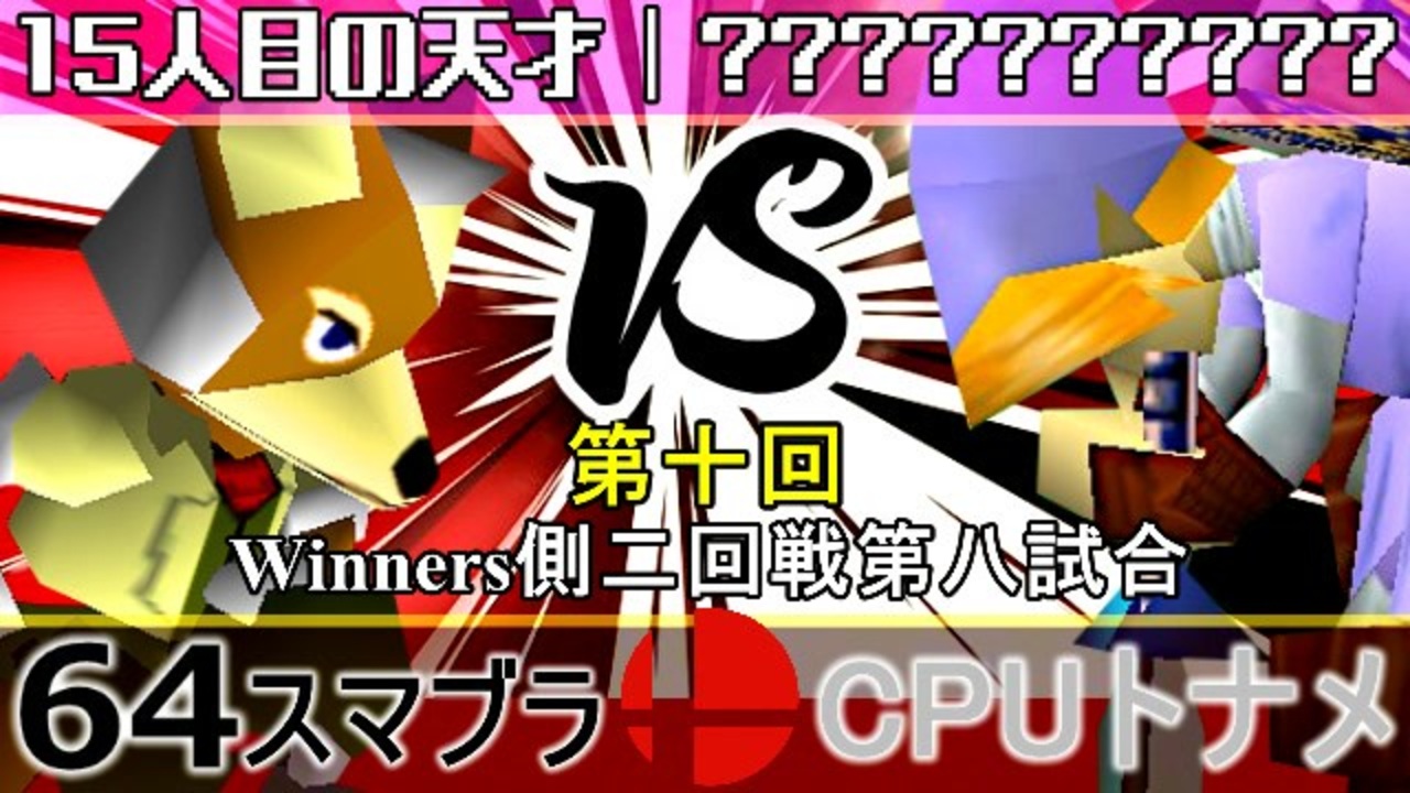人智を超えたエンターテイナー vs ????????????<br>※どちらが勝つかアンケ結果(Twitter調べ) <br>15人目の天才(FO) ??% VS 無敵の転校生or使者様㌧(LI) ??%<br><br><span style="color: #ff0000;"><strong>※レベルが違ったので(無敵の転校生or使者様㌧が乱入)後日正しいレベルの8にして撮り直します</strong></span><br>確認が足りませんでした 申し訳ありませんm(_ _)m<br><br><span style="color: #0000ff; font-size: 13px;"><u>※64スマブラCPUトナメ実況wiki</u></span><span style="color: #0000ff; font-size: 13px;">→</span> <a href="https://wiki3.jp/64cpu_P" target="_blank" rel="noopener nofollow">https://wiki3.jp/64cpu_P</a><br><br><span style="color: #ff0000; font-size: 24px;"><strong>次→</strong></span>【<a href="https://www.nicovideo.jp/watch/sm35979690" class="watch">sm35979690</a>】※毎日投稿<br><br>前【<a href="https://www.nicovideo.jp/watch/sm35966565" class="watch">sm35966565</a>】 Winners一回戦第一試合【<a href="https://www.nicovideo.jp/watch/sm35872182" class="watch">sm35872182</a>】 <span style="color: #000000; font-size: 13px;">予選</span>Aブロック第一試合【<a href="https://www.nicovideo.jp/watch/sm35254266" class="watch">sm35254266</a>】 <br><span style="font-size: 14px;">第十回選手紹介動画【</span><span style="color: #006699; font-size: 14px;"><a href="https://www.nicovideo.jp/watch/sm35240933" class="watch">sm35240933</a></span><span style="font-size: 14px;">】</span><br>第十回マイリスト【<a href="https://www.nicovideo.jp/mylist/65788927" target="_blank" rel="noopener">mylist/65788927</a>】<br>64スマブラCPUトナメ実況part1まとめ【<a href="https://www.nicovideo.jp/mylist/60846861" target="_blank" rel="noopener">mylist/60846861</a>】<br>その他シリーズ【<a href="https://www.nicovideo.jp/mylist/12965027" target="_blank" rel="noopener">mylist/12965027</a>】<br><br><span style="color: #00bfff; font-size: 13px;"><strong>Twitter</strong></span>【<a href="https://twitter.com/niconicopppppp" target="_blank" rel="noopener nofollow">https://twitter.com/niconicopppppp</a> 】<br><span style="color: #ff4500; font-size: 13px;"><strong>チャンネル</strong></span>【<a href="https://ch.nicovideo.jp/p-desu" target="_blank" rel="noopener">ch.nicovideo.jp/p-desu</a>】