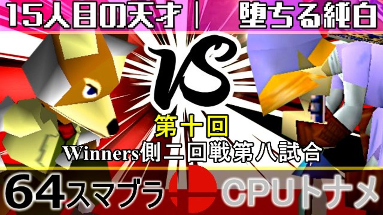 人智を超えたエンターテイナー vs 試されるセンザイ能力<br>※どちらが勝つかアンケ結果(Twitter調べ) <br>15人目の天才(FO) 78% VS 堕ちる純白(LI) 22%<br><br><span style="color: #0000ff; font-size: 13px;"><u>※64スマブラCPUトナメ実況wiki</u></span><span style="color: #0000ff; font-size: 13px;">→</span> <a href="https://wiki3.jp/64cpu_P" target="_blank" rel="noopener nofollow">https://wiki3.jp/64cpu_P</a><br><br><span style="color: #ff0000; font-size: 24px;"><strong>次→</strong></span>【<a href="https://www.nicovideo.jp/watch/sm35982078" class="watch">sm35982078</a>】※毎日投稿<br><br>前【<a href="https://www.nicovideo.jp/watch/sm35975034" class="watch">sm35975034</a>】 Winners一回戦第一試合【<a href="https://www.nicovideo.jp/watch/sm35872182" class="watch">sm35872182</a>】 <span style="color: #000000; font-size: 13px;">予選</span>Aブロック第一試合【<a href="https://www.nicovideo.jp/watch/sm35254266" class="watch">sm35254266</a>】 <br><span style="font-size: 14px;">第十回選手紹介動画【</span><span style="color: #006699; font-size: 14px;"><a href="https://www.nicovideo.jp/watch/sm35240933" class="watch">sm35240933</a></span><span style="font-size: 14px;">】</span><br>第十回マイリスト【<a href="https://www.nicovideo.jp/mylist/65788927" target="_blank" rel="noopener">mylist/65788927</a>】<br>64スマブラCPUトナメ実況part1まとめ【<a href="https://www.nicovideo.jp/mylist/60846861" target="_blank" rel="noopener">mylist/60846861</a>】<br>その他シリーズ【<a href="https://www.nicovideo.jp/mylist/12965027" target="_blank" rel="noopener">mylist/12965027</a>】<br><br><span style="color: #00bfff; font-size: 13px;"><strong>Twitter</strong></span>【<a href="https://twitter.com/niconicopppppp" target="_blank" rel="noopener nofollow">https://twitter.com/niconicopppppp</a> 】<br><span style="color: #ff4500; font-size: 13px;"><strong>チャンネル</strong></span>【<a href="https://ch.nicovideo.jp/p-desu" target="_blank" rel="noopener">ch.nicovideo.jp/p-desu</a>】
