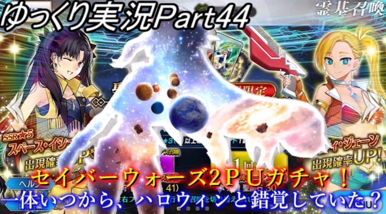 皆様、おはこんばんちわ!<br><span style="color: #545454; font-size: 13px;">(๑• ㅂ• )و✧</span><span style="color: #000000; font-size: 13px;"> </span>いつもご視聴ありがとうございます!<br><br>セイバーウォーズの続編!<br><br><span style="font-size: 24px;"><strong>一体いつから、ハロウィンと錯覚していた?</strong></span><br><br>声優さんの声ってすげぇ...<br><br>新調したPCで初の編集をしたので快適です!<br><br>ガチャも快適になってくれないかなぁ...<br><br><span style="font-size: 24px;"><strong>( ゚Д゚)</strong></span><span style="color: #6a6a6a; font-size: 24px;"><strong>アーアアーアーアアー</strong></span><span style="color: #545454; font-size: 24px;"><strong>アーアア</strong></span><br><span style="color: #545454; font-size: 14px;">TRANS-AM それが聞こえたら終わり...</span><br><br><strong><u>※動画の内容で、一部変更している部分があります。<br>今後は「呼符」「聖晶石」「ボーナス」の合計回数を画面右上部に集計するため、ご了承ください。</u></strong><br><br>次回⇒<a href="https://www.nicovideo.jp/watch/sm36162550" class="watch">sm36162550</a> 12/31 15時投稿<br>前回⇒<a href="https://www.nicovideo.jp/watch/sm35693185" class="watch">sm35693185</a><br><br>マイリスト⇒<a href="https://www.nicovideo.jp/mylist/59483807" target="_blank" rel="noopener">mylist/59483807</a><br>Twitterアカウント⇒twitter.com/BECK_yukkuriFGO<br>ガチャの生放送配信も、twitterで報告しております。 <br>皆様のフォローお待ちしております!