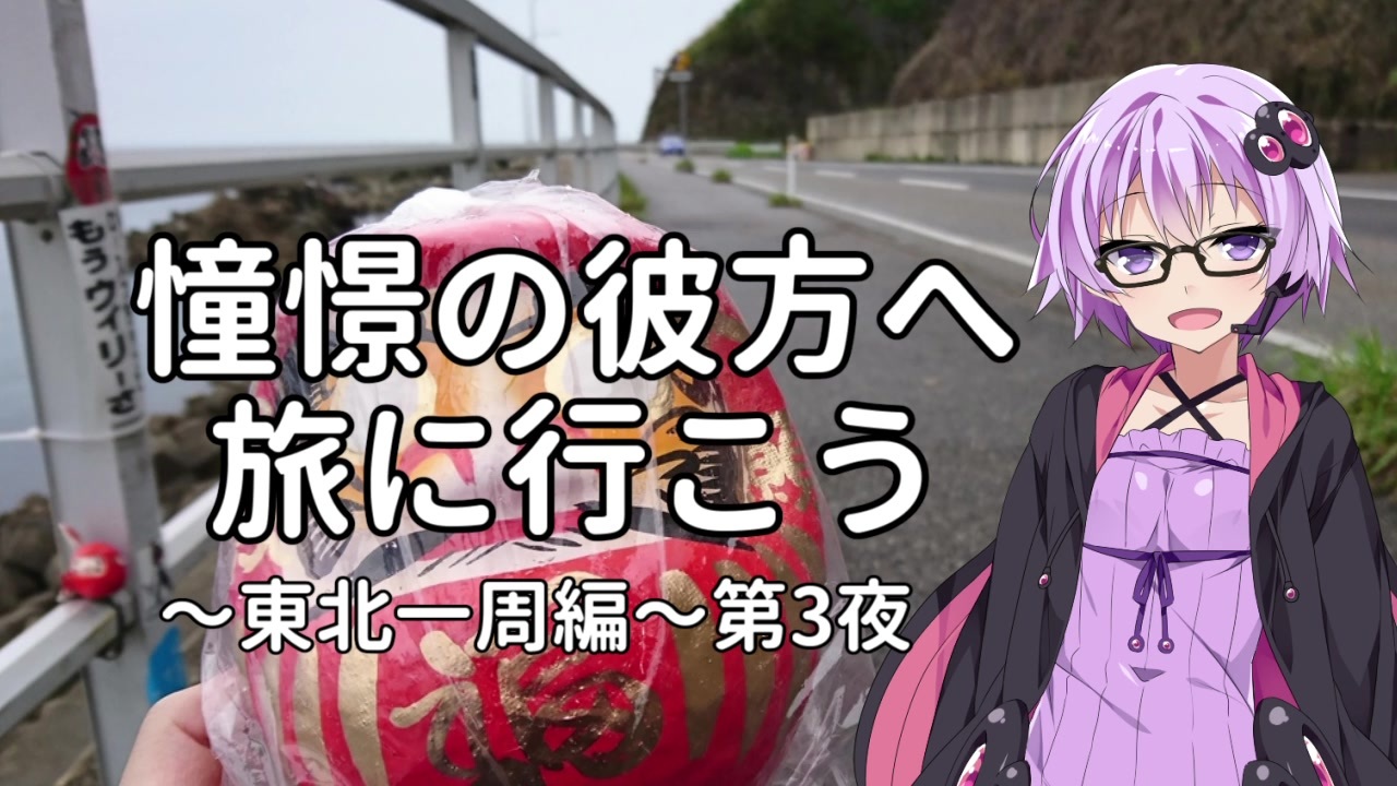 <span style="color: #262626; font-size: 18px;"><strong>カブ主は引かれあう運命・・・!</strong></span><br><br><br>少林山達磨寺で新たに旅の相棒<span style="color: #ff0000;">だるまさん</span>を迎えた我々は、ミスターさんが苦しんだ恐怖の三国峠を越え、日本海に面する新潟県へと足を踏み入れました。そこは天下の米どころ、そして数々の珍()スポットが待ち受けておりました。<br><br>シリーズ第3夜、初めて目にする謎のオブジェクト達、そしてカブで日本一周にチャレンジした猛者との出会い、ご覧ください!<br><br>マイリスト<a href="https://www.nicovideo.jp/mylist/66597743" target="_blank" rel="noopener">mylist/66597743</a><br>前回(第2夜)<a href="https://www.nicovideo.jp/watch/sm35863072" class="watch">sm35863072</a>|今ココ(第3夜)|次回 (第4夜)<a href="https://www.nicovideo.jp/watch/sm36089530" class="watch">sm36089530</a><br><br><br>カブで日本一周に挑んだきょぼんさんの動画はこちら!<br><span style="color: #000000;">ド素人が日本一周行ってみた 最新作 </span><a href="https://www.nicovideo.jp/watch/sm36018324" class="watch">sm36018324</a><br>ド素人が日本一周行ってみた 決意表明編 <a href="https://www.nicovideo.jp/watch/sm34458125" class="watch">sm34458125</a><br>マイリスト<span style="color: #006699; font-size: 14px;"><a href="https://www.nicovideo.jp/mylist/64280441" target="_blank" rel="noopener">mylist/64280441</a></span><br><br>twitterを始めました。進捗とか旅のこととか社畜的なことつぶやいてます(こっちも超初心者につき多少のミスとかはご勘弁を)<br><a href="https://twitter.com/mino25158128" target="_blank" rel="noopener nofollow">https://twitter.com/mino25158128</a><br><br>本編で二人が話してる年末年始の企画はこちらのtwiplaから見るべし!<br><a href="https://twipla.jp/events/416058" target="_blank" rel="noopener nofollow">https://twipla.jp/events/416058</a><br><br>きりたん立ち絵のことでそーきさん(<a href="https://www.nicovideo.jp/user/347413" target="_blank" rel="noopener">user/347413</a>)にアドバイス頂きました。感謝!<br><br>使用素材で脱字がありました!本当に申し訳ない・・・。<br>・東北きりたん【キャラ素材】(blueberry様<a href="https://seiga.nicovideo.jp/seiga/im6167817" target="_blank" rel="noopener">im6167817</a>)