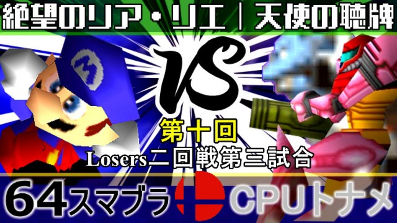 絶望の化け物 vs 未来予知<br>※どちらが勝つかアンケ結果(Twitter調べ) <br>絶望のリア・リエ(MA) 64% VS 天使の聴牌(SA) 34%<br><br><span style="color: #0000ff; font-size: 13px;"><u>※64スマブラCPUトナメ実況wiki</u></span><span style="color: #0000ff; font-size: 13px;">→</span> <a href="https://wiki3.jp/64cpu_P" target="_blank" rel="noopener nofollow">https://wiki3.jp/64cpu_P</a><br><br><span style="color: #ff0000; font-size: 24px;"><strong>次→</strong></span>【<a href="https://www.nicovideo.jp/watch/sm35986873" class="watch">sm35986873</a>】※毎日投稿<br><br>前【<a href="https://www.nicovideo.jp/watch/sm35982078" class="watch">sm35982078</a>】 Winners一回戦第一試合【<a href="https://www.nicovideo.jp/watch/sm35872182" class="watch">sm35872182</a>】 <span style="color: #000000; font-size: 13px;">予選</span>Aブロック第一試合【<a href="https://www.nicovideo.jp/watch/sm35254266" class="watch">sm35254266</a>】 <br><span style="font-size: 14px;">第十回選手紹介動画【</span><span style="color: #006699; font-size: 14px;"><a href="https://www.nicovideo.jp/watch/sm35240933" class="watch">sm35240933</a></span><span style="font-size: 14px;">】</span><br>第十回マイリスト【<a href="https://www.nicovideo.jp/mylist/65788927" target="_blank" rel="noopener">mylist/65788927</a>】<br>64スマブラCPUトナメ実況part1まとめ【<a href="https://www.nicovideo.jp/mylist/60846861" target="_blank" rel="noopener">mylist/60846861</a>】<br>その他シリーズ【<a href="https://www.nicovideo.jp/mylist/12965027" target="_blank" rel="noopener">mylist/12965027</a>】<br><br><span style="color: #00bfff; font-size: 13px;"><strong>Twitter</strong></span>【<a href="https://twitter.com/niconicopppppp" target="_blank" rel="noopener nofollow">https://twitter.com/niconicopppppp</a> 】<br><span style="color: #ff4500; font-size: 13px;"><strong>チャンネル</strong></span>【<a href="https://ch.nicovideo.jp/p-desu" target="_blank" rel="noopener">ch.nicovideo.jp/p-desu</a>】
