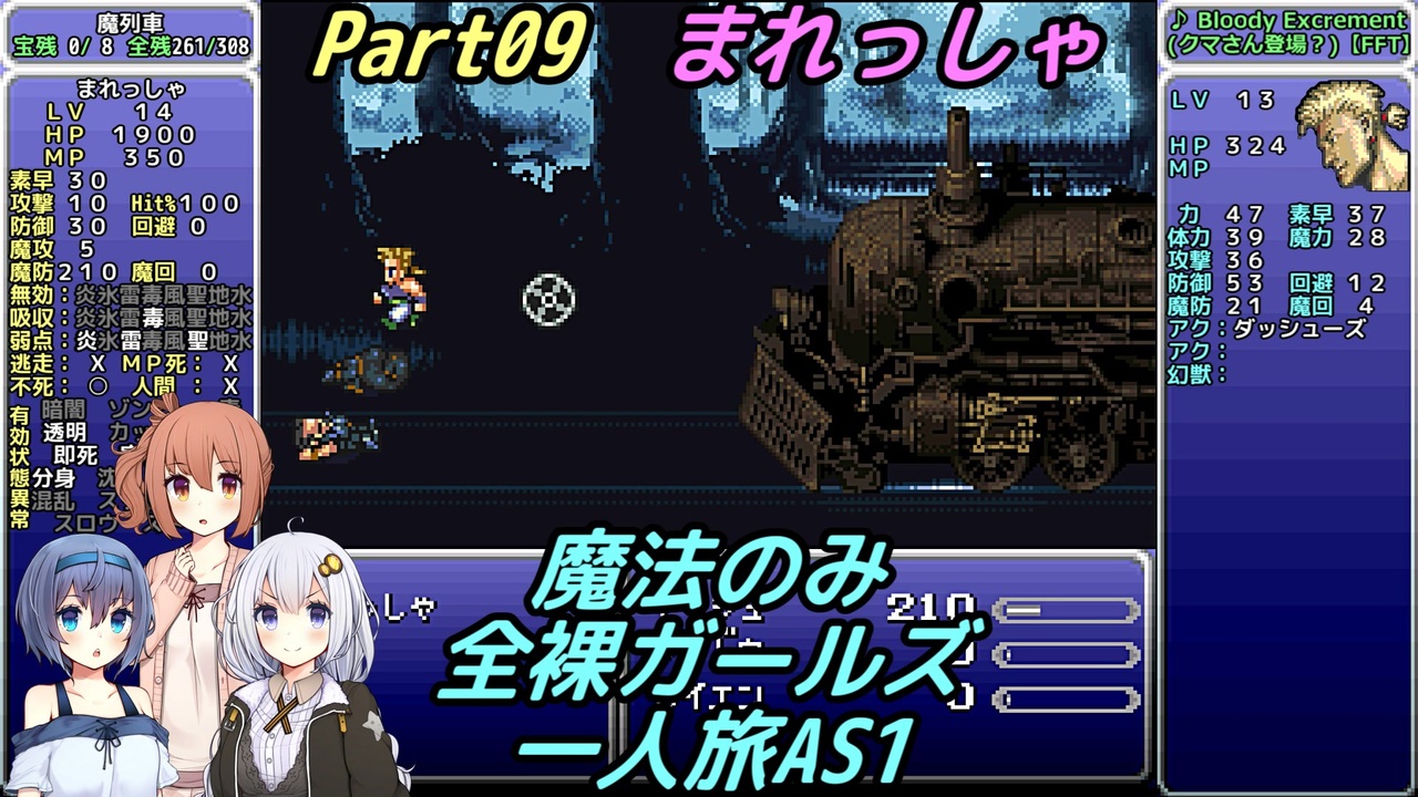 12歳当時のゲームのようなゲームを私はその後持ったことがない。<br><br>・次回 … Part10 <a href="https://www.nicovideo.jp/watch/sm36164213" class="watch">sm36164213</a><br>・前回 … Part08 <a href="https://www.nicovideo.jp/watch/sm35826383" class="watch">sm35826383</a><br><br>・Youtube版 … <a href="https://youtu.be/B75X2tbamPk" target="_blank" rel="noopener nofollow">https://youtu.be/B75X2tbamPk</a><br>・字幕のみ … <a href="https://youtu.be/yi0T3QLakGk" target="_blank" rel="noopener nofollow">https://youtu.be/yi0T3QLakGk</a><br><br>【縛り内容】<br>1、魔法のみ<br>2、全裸(魔石はあり)<br>3、ガールズ<br>4、一人旅<br>5、アクティブ バトルスピード1 メッセージスピード1 詳細:<a href="https://www.nicovideo.jp/watch/sm34595412" class="watch">sm34595412</a><br>6、逃げられない!!表示の連射禁止<br>7、ボスの即死は禁止<br>8、宝物は全て集める<br>9、不具合やバグは不可<br>10、可能な限り低レベル<br>11、コマンド短縮やカーソル記憶しない<br>12、セーブ可能な場所でのみアイテム可<br>13、一部ストーリー上の編成でやむを得ない場合は最低限<br /><br>ふよふよしているの<br>絵:横沢さわらさん VOICEVOX:WhiteCUL<br><br>【シリーズ】<br>くうねるきゃんぷ … <a href="https://www.nicovideo.jp/series/516069" target="_blank" rel="noopener">series/516069</a><br>お写んぽ! … <a href="https://www.nicovideo.jp/series/435756" target="_blank" rel="noopener">series/435756</a><br>様子がおかしい! … <a href="https://www.nicovideo.jp/series/418875" target="_blank" rel="noopener">series/418875</a><br>FF7 魔法マテリアのみ初期防具ガールズ一人旅ASM … <a href="https://www.nicovideo.jp/series/438696" target="_blank" rel="noopener">series/438696</a><br>きんかつ!V-STROM1050XT … <a href="https://www.nicovideo.jp/series/144466" target="_blank" rel="noopener">series/144466</a><br>FF6 魔法のみ全裸ガールズ一人旅AS1 … <a href="https://www.nicovideo.jp/series/9438" target="_blank" rel="noopener">series/9438</a><br>おバイク!GLADIUS400 ABS … <a href="https://www.nicovideo.jp/series/68579" target="_blank" rel="noopener">series/68579</a><br>FF5 魔法のみ全裸一人旅AS1 … <a href="https://www.nicovideo.jp/series/9432" target="_blank" rel="noopener">series/9432</a><br>DQ3 呪文のみ全裸一人旅 … <a href="https://www.nicovideo.jp/series/9416" target="_blank" rel="noopener">series/9416</a><br>DQ2 ムーンブルクの王女一人旅 … <a href="https://www.nicovideo.jp/series/9414" target="_blank" rel="noopener">series/9414</a><br>DQ1 全裸 … <a href="https://www.nicovideo.jp/series/9412" target="_blank" rel="noopener">series/9412</a><br>FE 紋章の謎 天馬騎士単騎 第2部 英雄戦争 … <a href="https://www.nicovideo.jp/series/9404" target="_blank" rel="noopener">series/9404</a><br>FE 紋章の謎 天馬騎士単騎 第1部 暗黒戦争 … <a href="https://www.nicovideo.jp/series/9401" target="_blank" rel="noopener">series/9401</a><br>聖剣2 全裸プリム一人旅 武器Lv1など … <a href="https://www.nicovideo.jp/series/9396" target="_blank" rel="noopener">series/9396</a><br>ロマサガ2 魔術士不得意武器のみ … <a href="https://www.nicovideo.jp/series/9388" target="_blank" rel="noopener">series/9388</a><br>ロマサガ1 術法のみ一人旅で各イベント攻略 … <a href="https://www.nicovideo.jp/series/9386" target="_blank" rel="noopener">series/9386</a><br><br>SNSとか色々なリンク … <a href="https://lit.link/Unaa" target="_blank" rel="noopener nofollow">https://lit.link/Unaa</a>