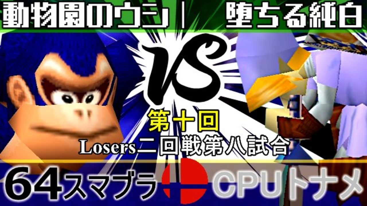 遺伝子組み換え黒毛和牛 vs 落ちない純白<br>※どちらが勝つかアンケ結果(Twitter調べ) <br>動物園のウシ(DK) 55% VS 堕ちる純白(LI) 45%<br><br><span style="color: #0000ff; font-size: 13px;"><u>※64スマブラCPUトナメ実況wiki</u></span><span style="color: #0000ff; font-size: 13px;">→</span> <a href="https://wiki3.jp/64cpu_P" target="_blank" rel="noopener nofollow">https://wiki3.jp/64cpu_P</a><br><br><span style="color: #ff0000; font-size: 24px;"><strong>次→</strong></span>【<a href="https://www.nicovideo.jp/watch/sm36018645" class="watch">sm36018645</a>】※毎日投稿<br><br>前【<a href="https://www.nicovideo.jp/watch/sm36009733" class="watch">sm36009733</a>】 Winners一回戦第一試合【<a href="https://www.nicovideo.jp/watch/sm35872182" class="watch">sm35872182</a>】 <span style="color: #000000; font-size: 13px;">予選</span>Aブロック第一試合【<a href="https://www.nicovideo.jp/watch/sm35254266" class="watch">sm35254266</a>】 <br><span style="font-size: 14px;">第十回選手紹介動画【</span><span style="color: #006699; font-size: 14px;"><a href="https://www.nicovideo.jp/watch/sm35240933" class="watch">sm35240933</a></span><span style="font-size: 14px;">】</span><br>第十回マイリスト【<a href="https://www.nicovideo.jp/mylist/65788927" target="_blank" rel="noopener">mylist/65788927</a>】<br>64スマブラCPUトナメ実況part1まとめ【<a href="https://www.nicovideo.jp/mylist/60846861" target="_blank" rel="noopener">mylist/60846861</a>】<br>その他シリーズ【<a href="https://www.nicovideo.jp/mylist/12965027" target="_blank" rel="noopener">mylist/12965027</a>】<br><br><span style="color: #00bfff; font-size: 13px;"><strong>Twitter</strong></span>【<a href="https://twitter.com/niconicopppppp" target="_blank" rel="noopener nofollow">https://twitter.com/niconicopppppp</a> 】<br><span style="color: #ff4500; font-size: 13px;"><strong>チャンネル</strong></span>【<a href="https://ch.nicovideo.jp/p-desu" target="_blank" rel="noopener">ch.nicovideo.jp/p-desu</a>】
