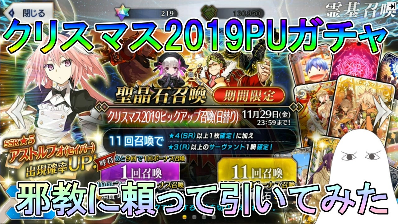 引き続きあの邪教に頼ってガチャしてみました。<br><br><span style="color: #0d0d0d; font-size: 14px;">動画についてリクエスト等ありましたらコメントやTwitter等にご連絡頂ければ可能な限り検討致します。<br>御用の際には下記アドレスまで宜しくお願いします。<br>連絡先メールアドレス → cecimesfr@gmail.com<br>Twitter → </span><span style="font-size: 14px;"><a href="https://twitter.com/Ceci_startnow" target="_blank" rel="noopener nofollow">https://twitter.com/Ceci_startnow</a></span><br><span style="color: #0d0d0d; font-size: 14px;">今回の動画の音楽は「魔王魂様」「H/MIX GALLERY 様」「D-elf様」「甘茶の音楽工房様」からお借りしています</span><br><br><span style="color: #111111;">前回の動画→</span><a href="https://www.nicovideo.jp/watch/sm36009471" class="watch">sm36009471</a><span style="color: #111111;"> 次回の動画→</span><a href="https://www.nicovideo.jp/watch/sm36018477" class="watch">sm36018477</a><br><br><span style="color: #111111;">FGO過去動画→</span><span style="color: #111111;"><u><a href="https://www.nicovideo.jp/mylist/60420393" target="_blank" rel="noopener">mylist/60420393</a></u></span><br><span style="color: #111111;">システム考察で活用する動画リスト→</span><u><a href="https://www.nicovideo.jp/mylist/66880621" target="_blank" rel="noopener">mylist/66880621</a></u>