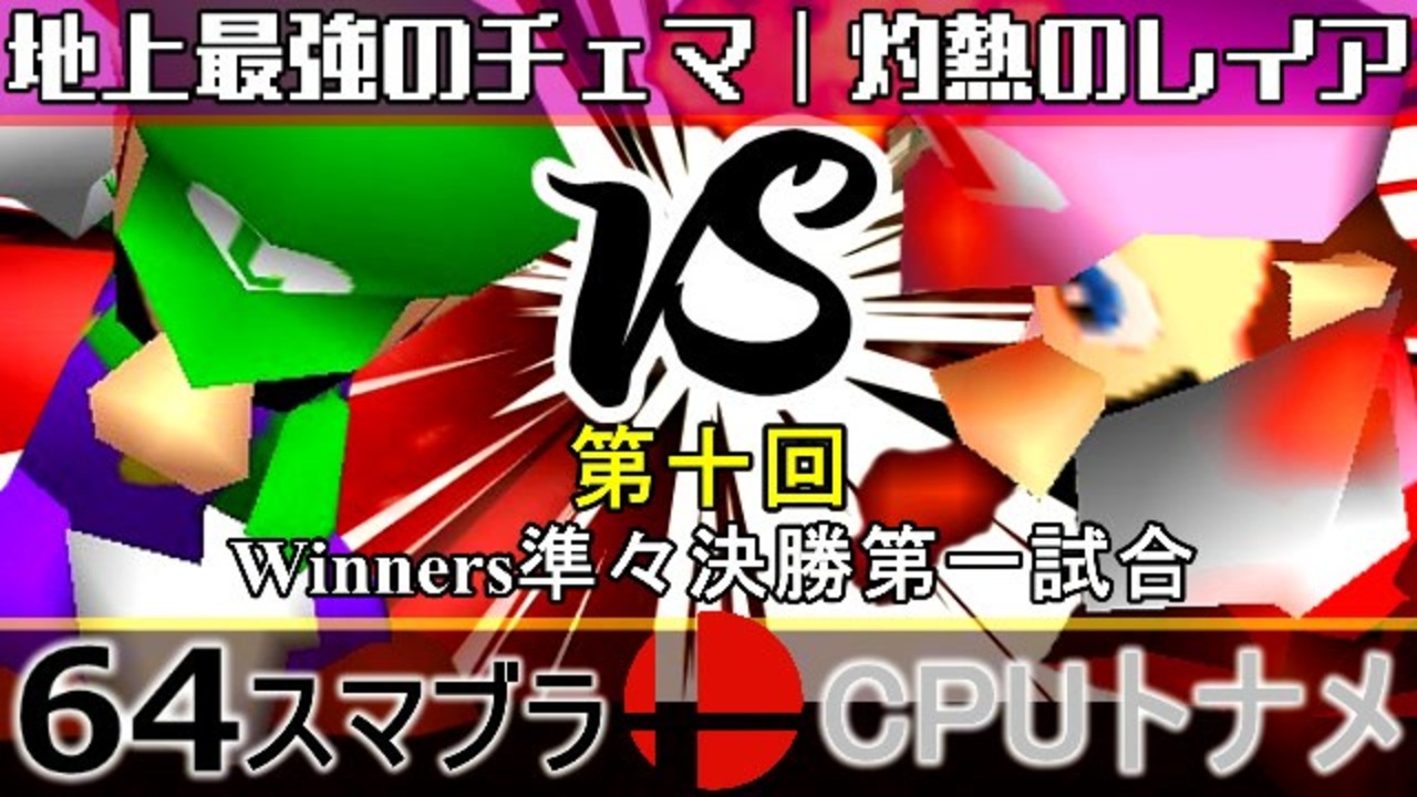 地上では最強 vs 第一回優勝者<br>※どちらが勝つかアンケ結果(Twitter調べ) <br>地上最強のチェマ(LU) 23% VS 灼熱のレイア(LU) 77%<br><br><span style="color: #0000ff; font-size: 13px;"><u>※64スマブラCPUトナメ実況wiki</u></span><span style="color: #0000ff; font-size: 13px;">→</span> <a href="https://wiki3.jp/64cpu_P" target="_blank" rel="noopener nofollow">https://wiki3.jp/64cpu_P</a><br><br><span style="color: #ff0000; font-size: 24px;"><strong>次→</strong></span>【<a href="https://www.nicovideo.jp/watch/sm36023132" class="watch">sm36023132</a>】※毎日投稿<br><br>前【<a href="https://www.nicovideo.jp/watch/sm36013629" class="watch">sm36013629</a>】 Winners一回戦第一試合【<a href="https://www.nicovideo.jp/watch/sm35872182" class="watch">sm35872182</a>】 <span style="color: #000000; font-size: 13px;">予選</span>Aブロック第一試合【<a href="https://www.nicovideo.jp/watch/sm35254266" class="watch">sm35254266</a>】 <br><span style="font-size: 14px;">第十回選手紹介動画【</span><span style="color: #006699; font-size: 14px;"><a href="https://www.nicovideo.jp/watch/sm35240933" class="watch">sm35240933</a></span><span style="font-size: 14px;">】</span><br>第十回マイリスト【<a href="https://www.nicovideo.jp/mylist/65788927" target="_blank" rel="noopener">mylist/65788927</a>】<br>64スマブラCPUトナメ実況part1まとめ【<a href="https://www.nicovideo.jp/mylist/60846861" target="_blank" rel="noopener">mylist/60846861</a>】<br>その他シリーズ【<a href="https://www.nicovideo.jp/mylist/12965027" target="_blank" rel="noopener">mylist/12965027</a>】<br><br><span style="color: #00bfff; font-size: 13px;"><strong>Twitter</strong></span>【<a href="https://twitter.com/niconicopppppp" target="_blank" rel="noopener nofollow">https://twitter.com/niconicopppppp</a> 】<br><span style="color: #ff4500; font-size: 13px;"><strong>チャンネル</strong></span>【<a href="https://ch.nicovideo.jp/p-desu" target="_blank" rel="noopener">ch.nicovideo.jp/p-desu</a>】