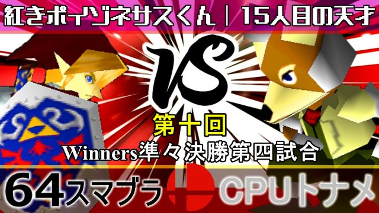 自滅しなきゃ最強 vs 人智を超えたエンターテイナー<br>※どちらが勝つかアンケ結果(Twitter調べ) <br>紅きポイゾネサスくん(LI) 36% VS 15人目の天才(FO) 64%<br><br><span style="color: #0000ff; font-size: 13px;"><u>※64スマブラCPUトナメ実況wiki</u></span><span style="color: #0000ff; font-size: 13px;">→</span> <a href="https://wiki3.jp/64cpu_P" target="_blank" rel="noopener nofollow">https://wiki3.jp/64cpu_P</a><br><br><span style="color: #ff0000; font-size: 24px;"><strong>次→</strong></span>【<a href="https://www.nicovideo.jp/watch/sm36035084" class="watch">sm36035084</a>】※毎日投稿<br><br>前【<a href="https://www.nicovideo.jp/watch/sm36026805" class="watch">sm36026805</a>】 Winners一回戦第一試合【<a href="https://www.nicovideo.jp/watch/sm35872182" class="watch">sm35872182</a>】 <span style="color: #000000; font-size: 13px;">予選</span>Aブロック第一試合【<a href="https://www.nicovideo.jp/watch/sm35254266" class="watch">sm35254266</a>】 <br><span style="font-size: 14px;">第十回選手紹介動画【</span><span style="color: #006699; font-size: 14px;"><a href="https://www.nicovideo.jp/watch/sm35240933" class="watch">sm35240933</a></span><span style="font-size: 14px;">】</span><br>第十回マイリスト【<a href="https://www.nicovideo.jp/mylist/65788927" target="_blank" rel="noopener">mylist/65788927</a>】<br>64スマブラCPUトナメ実況part1まとめ【<a href="https://www.nicovideo.jp/mylist/60846861" target="_blank" rel="noopener">mylist/60846861</a>】<br>その他シリーズ【<a href="https://www.nicovideo.jp/mylist/12965027" target="_blank" rel="noopener">mylist/12965027</a>】<br><br><span style="color: #00bfff; font-size: 13px;"><strong>Twitter</strong></span>【<a href="https://twitter.com/niconicopppppp" target="_blank" rel="noopener nofollow">https://twitter.com/niconicopppppp</a> 】<br><span style="color: #ff4500; font-size: 13px;"><strong>チャンネル</strong></span>【<a href="https://ch.nicovideo.jp/p-desu" target="_blank" rel="noopener">ch.nicovideo.jp/p-desu</a>】