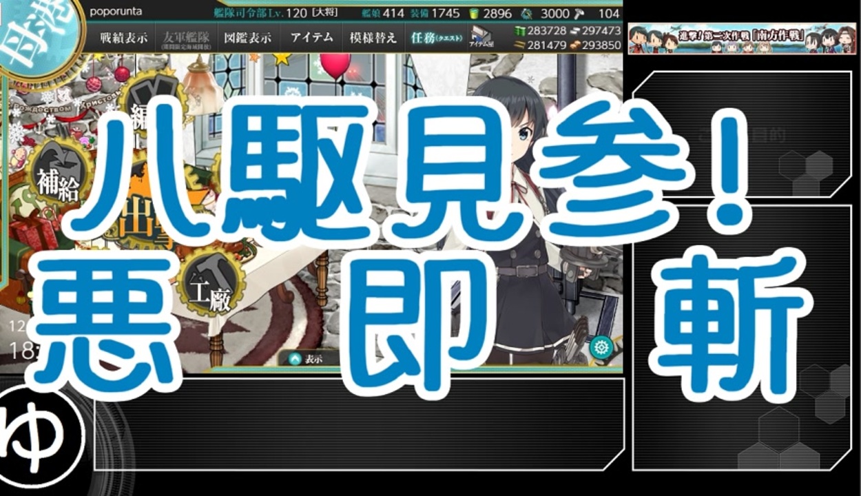 艦隊これくしょん 2019秋イベント 進撃!第二次作戦「南方作戦」E-1 【八駆見参!バリ島沖海戦】のゆっくり攻略実況です。<br>イベント攻略はすべて甲難易度を基準に話しています。<br>早い段階での攻略なので、間違った情報が多分に含まれます。<br>提督レベル120、ALL甲難易度、重婚、サブ艦有り、ダメコン不使用、微課金提督の攻略です。<br><br>E1>[これ]<br>E2><a href="https://www.nicovideo.jp/watch/sm36043135" class="watch">sm36043135</a><br>E3><a href="https://www.nicovideo.jp/watch/sm36048117" class="watch">sm36048117</a><br>E4><a href="https://www.nicovideo.jp/watch/sm36052616" class="watch">sm36052616</a><br>E5><a href="https://www.nicovideo.jp/watch/sm36106496" class="watch">sm36106496</a><br>E6><a href="https://www.nicovideo.jp/watch/sm36111631" class="watch">sm36111631</a><br><br>艦これマイリス <a href="https://www.nicovideo.jp/mylist/45265838" target="_blank" rel="noopener">mylist/45265838</a><br>その他雑多マイリス <a href="https://www.nicovideo.jp/mylist/29124403" target="_blank" rel="noopener">mylist/29124403</a><br>コミュ co1309914<br>Twitter @majin_poporunta<br>質問箱 peing.net/ja/majin_poporunta