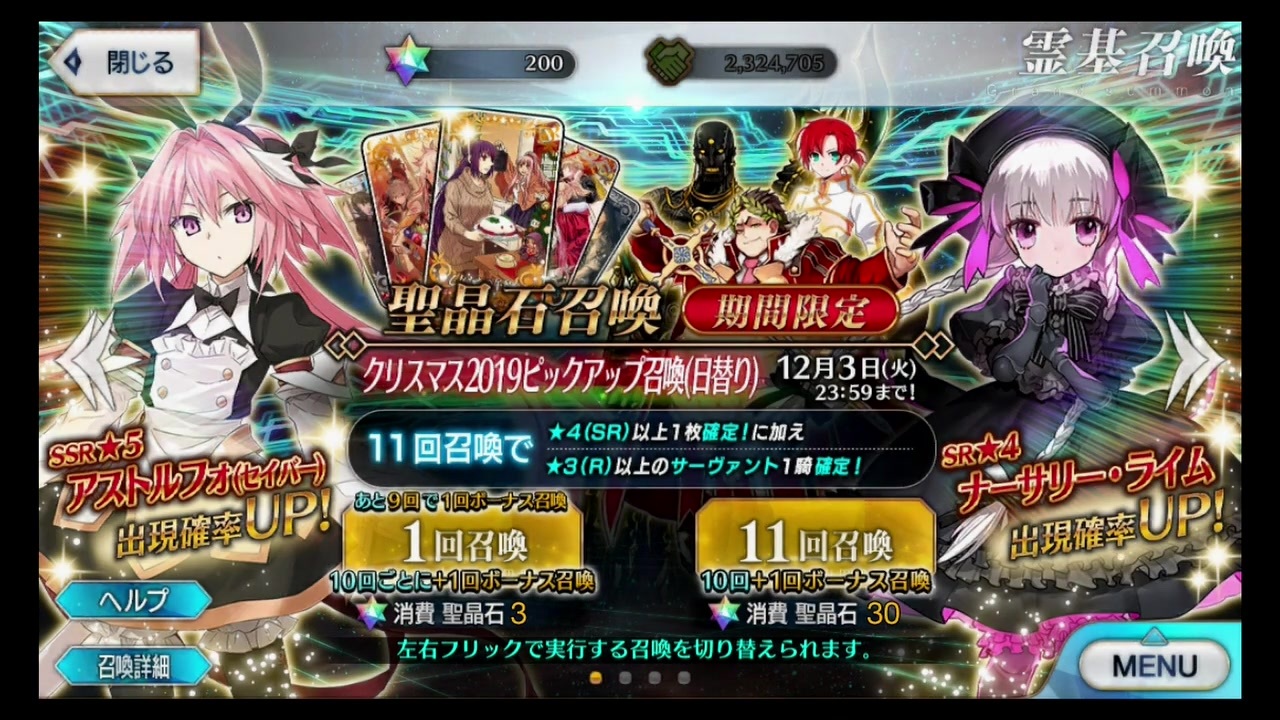 ひとくちガチャ動画2<br><span style="font-size: 14px;">ユガクシェートラ→</span><span style="color: #006699; font-size: 14px;"><a href="https://www.nicovideo.jp/series/22712" target="_blank" rel="noopener">series/22712</a></span><br><span style="color: #000000; font-size: 14px;">クリスマス2019→</span>/<a href="https://www.nicovideo.jp/series/74089" target="_blank" rel="noopener">series/74089</a><br><span style="color: #000000; font-size: 14px;">幕間→</span><span style="color: #006699; font-size: 14px;"><a href="https://www.nicovideo.jp/mylist/62951452" target="_blank" rel="noopener">mylist/62951452</a></span><br><span style="color: #000000; font-size: 13px;">イベ</span><span style="color: #393f3f; font-size: 13px;">ント→</span><span style="color: #006699; font-size: 13px;"><a href="https://www.nicovideo.jp/mylist/61865239" target="_blank" rel="noopener">mylist/61865239</a></span><br><span style="color: #000000; font-size: 14px;">ガチャや育成→</span><span style="color: #006699; font-size: 14px;"><a href="https://www.nicovideo.jp/mylist/61825956" target="_blank" rel="noopener">mylist/61825956</a></span><br><span style="color: #000000; font-size: 14px;">章まとめ→</span><span style="color: #006699; font-size: 14px;"><a href="https://www.nicovideo.jp/mylist/62022843" target="_blank" rel="noopener">mylist/62022843</a></span>