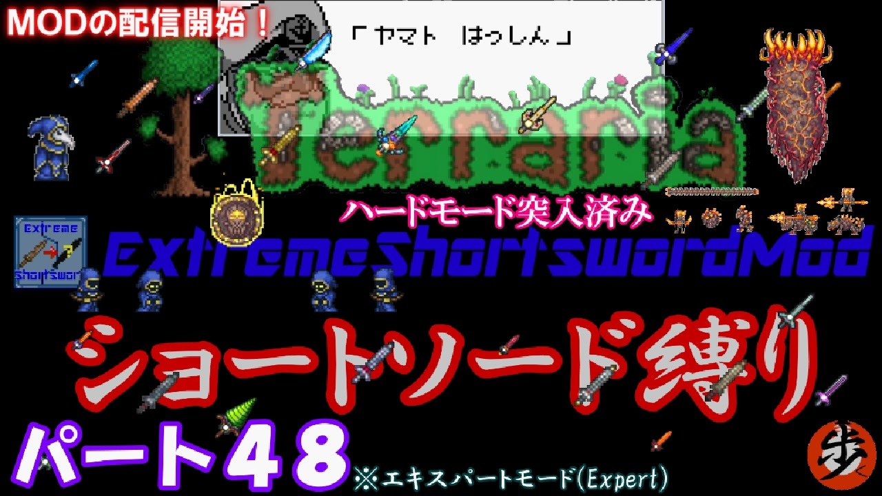 今回からムーンイベント開始!<br>年内完走は出来たら良いなレベルなので、<br>別に急いではいません♪<br><br><span style="font-size: 18px;"><strong>『Extremeshortsword』MOD公開中!</strong></span><br><strong>tModLoaderからダウンロード可能です!</strong><br><span style="font-size: 13px;"><strong>狂人用のcfモードもあるよ♪</strong></span><br><strong>(※動画内で質問やバグ等の情報は受け付けておりません!)</strong><br><br><span style="color: #000000; font-size: 14px;">MODの入れ方についてはマッピーさんの→</span><span style="color: #006699; font-size: 14px;"><a href="https://www.nicovideo.jp/watch/sm31131367" class="watch">sm31131367</a></span><br><span style="color: #000000; font-size: 14px;">(</span><span style="color: #001835; font-size: 14px;">【Terraria】カバでも分かる!tModLoader導入方法【Mod】</span><span style="color: #000000; font-size: 14px;">)</span><br><br><span style="font-size: 13px;">歩く♪のツイッター→@aruku_douga</span><br><br>ルール(特に決めていませんが一応) <br>1.ショートソード以外の武器は使用しない。(攻撃が当たらない) <br>2.ゲーム内のボスを全て倒す。(イベントや襲撃は余裕があれば) <br>3.バグ技の使用は禁止 (当たり前) <br>4.編集は頑張らない () <br><br><a href="https://www.nicovideo.jp/watch/sm36018587" class="watch">sm36018587</a>←前 次回→<a href="https://www.nicovideo.jp/watch/sm36080281" class="watch">sm36080281</a> 12月14日(土曜日)9時公開<br>ショートソード縛りシリーズ→<a href="https://www.nicovideo.jp/series/12423" target="_blank" rel="noopener">series/12423</a><br>前シリーズ(オワタ式)シリーズ→<a href="https://www.nicovideo.jp/series/12415" target="_blank" rel="noopener">series/12415</a><br>歩くの過去シリーズ→<a href="https://www.nicovideo.jp/mylist/57583133" target="_blank" rel="noopener">mylist/57583133</a><br><br>今回のYouTube→<span style="color: #167ac6; font-size: 11px;"><a href="https://youtu.be/LVRfLLAtSLg" target="_blank" rel="noopener nofollow">https://youtu.be/LVRfLLAtSLg</a></span>