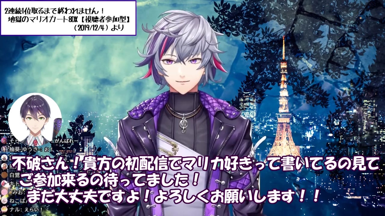 ゆめかわ王刀屋<br>・不破湊<br><a href="https://www.youtube.com/channel/UC6wvdADTJ88OfIbJYIpAaDA?sub_confirmation=1" target="_blank" rel="noopener nofollow">https://www.youtube.com/channel/UC6wvdADTJ88OfIbJYIpAaDA?sub_confirmation=1</a><br>・魔界ノりりむ<br><a href="https://www.youtube.com/channel/UC9EjSJ8pvxtvPdxLOElv73w?sub_confirmation=1" target="_blank" rel="noopener nofollow">https://www.youtube.com/channel/UC9EjSJ8pvxtvPdxLOElv73w?sub_confirmation=1</a><br>・剣持刀也<br><a href="https://www.youtube.com/channel/UCv1fFr156jc65EMiLbaLImw?sub_confirmation=1" target="_blank" rel="noopener nofollow">https://www.youtube.com/channel/UCv1fFr156jc65EMiLbaLImw?sub_confirmation=1</a><br><br>・元動画<br>▼2連続1位取るまで終われません!地獄のマリオカート8DX【視聴者参加型】(2019/12/4)<br><a href="https://www.youtube.com/watch?v=P_mGvRdAZM8" target="_blank" rel="noopener nofollow">https://www.youtube.com/watch?v=P_mGvRdAZM8</a><br>・該当箇所<br>(3:41~)<br><a href="https://www.youtube.com/watch?v=P_mGvRdAZM8&feature=youtu.be&t=221" target="_blank" rel="noopener nofollow">https://www.youtube.com/watch?v=P_mGvRdAZM8&feature=youtu.be&t=221</a><br>(16:53~)<br><a href="https://www.youtube.com/watch?v=P_mGvRdAZM8&feature=youtu.be&t=1013" target="_blank" rel="noopener nofollow">https://www.youtube.com/watch?v=P_mGvRdAZM8&feature=youtu.be&t=1013</a><br><br>▼【マリカ8DX】教習所1日目【にじさんじ/#りりむとあそぼう】(2019/12/4)<br><a href="https://www.youtube.com/watch?v=4VlBNXLjWrM" target="_blank" rel="noopener nofollow">https://www.youtube.com/watch?v=4VlBNXLjWrM</a><br>・該当箇所(41:18~)<br><a href="https://www.youtube.com/watch?v=4VlBNXLjWrM&feature=youtu.be&t=2478" target="_blank" rel="noopener nofollow">https://www.youtube.com/watch?v=4VlBNXLjWrM&feature=youtu.be&t=2478</a>