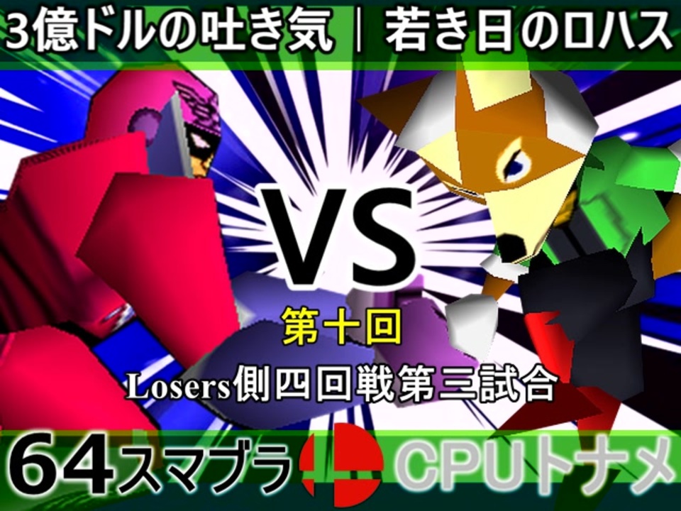 浦安の始祖 vs 待ち望まれた正統派<br>※どちらが勝つかアンケ結果(Twitter調べ) <br>3億ドルの吐き気(FA) 70% VS 若き日のロハス(FO) 30%<br><br><span style="color: #0000ff; font-size: 13px;"><u>※64スマブラCPUトナメ実況wiki</u></span><span style="color: #0000ff; font-size: 13px;">→</span> <a href="https://wiki3.jp/64cpu_P" target="_blank" rel="noopener nofollow">https://wiki3.jp/64cpu_P</a><br><br><span style="color: #ff0000; font-size: 24px;"><strong>次→</strong></span>【<a href="https://www.nicovideo.jp/watch/sm36070447" class="watch">sm36070447</a>】※毎日投稿<br><br>前【<a href="https://www.nicovideo.jp/watch/sm36063611" class="watch">sm36063611</a>】 Winners一回戦第一試合【<a href="https://www.nicovideo.jp/watch/sm35872182" class="watch">sm35872182</a>】 <span style="color: #000000; font-size: 13px;">予選</span>Aブロック第一試合【<a href="https://www.nicovideo.jp/watch/sm35254266" class="watch">sm35254266</a>】 <br><span style="font-size: 14px;">第十回選手紹介動画【</span><span style="color: #006699; font-size: 14px;"><a href="https://www.nicovideo.jp/watch/sm35240933" class="watch">sm35240933</a></span><span style="font-size: 14px;">】</span><br>第十回マイリスト【<a href="https://www.nicovideo.jp/mylist/65788927" target="_blank" rel="noopener">mylist/65788927</a>】<br>64スマブラCPUトナメ実況part1まとめ【<a href="https://www.nicovideo.jp/mylist/60846861" target="_blank" rel="noopener">mylist/60846861</a>】<br>その他シリーズ【<a href="https://www.nicovideo.jp/mylist/12965027" target="_blank" rel="noopener">mylist/12965027</a>】<br><br><span style="color: #00bfff; font-size: 13px;"><strong>Twitter</strong></span>【<a href="https://twitter.com/niconicopppppp" target="_blank" rel="noopener nofollow">https://twitter.com/niconicopppppp</a> 】<br><span style="color: #ff4500; font-size: 13px;"><strong>チャンネル</strong></span>【<a href="https://ch.nicovideo.jp/p-desu" target="_blank" rel="noopener">ch.nicovideo.jp/p-desu</a>】