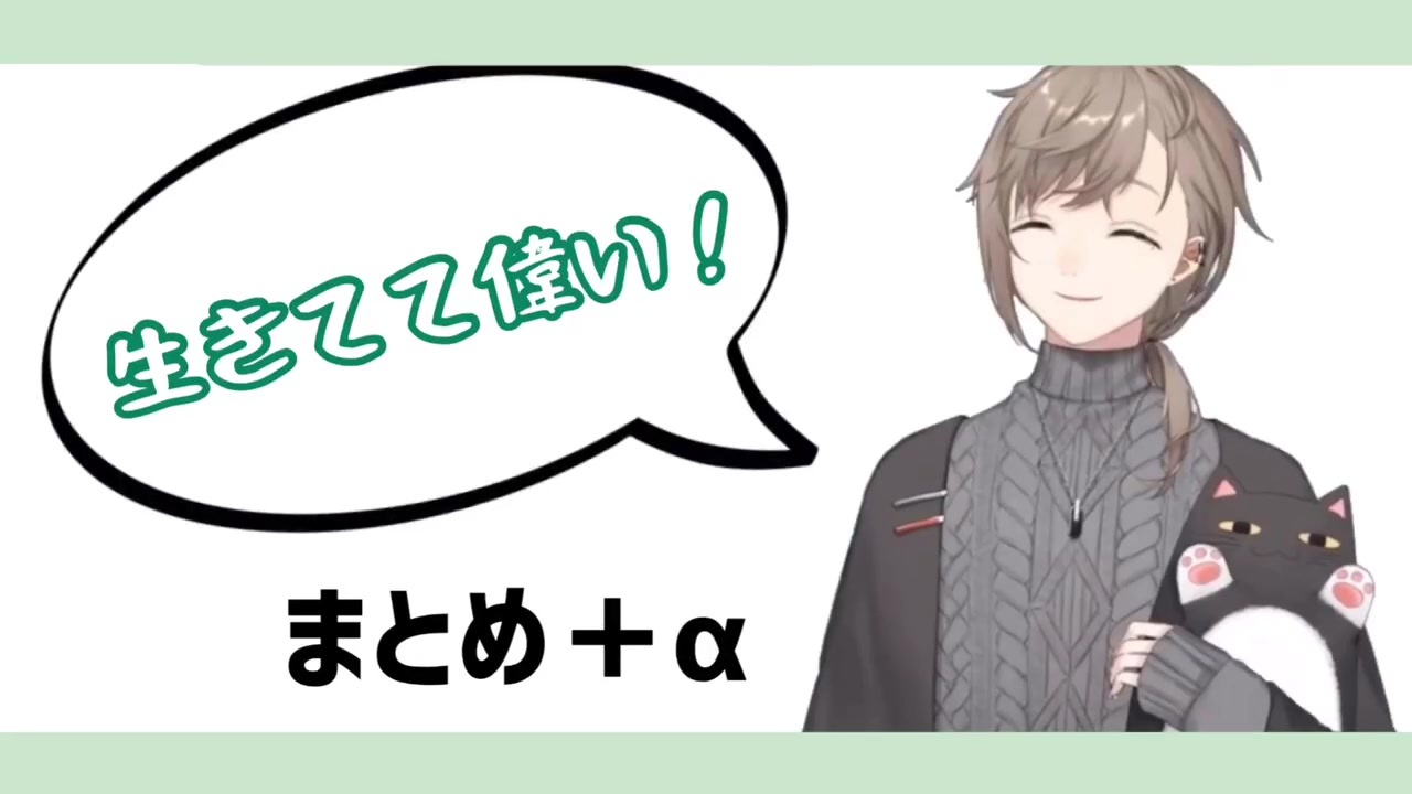 配信中や配信終わりにたまに言ってくれる「生きてて偉い」をまとめました。<br>最近生きてるのが辛かったので自分用に作ったのですが、編集中に聞きすぎて元気になってきたのでお裾分けします。<br><br>おまけは生きる気力を養う用です。<br><span style="color: #999999; font-size: 10px;">(スパチャでキスをすると返してくれる時があるので積極的にスパチャしような!)</span><br><br>ちゃんと寝なよって言ってくれるのもありがたい……。<br>全人類生きてて偉いし毎日配信頑張ってる叶くんが1番偉いです。今日も配信ありがとう。<br><br><br>※全てのアーカイブを確認した訳では無いので抜け漏れはあると思われます。<br>※順番はランダムです。<br>※使用したアーカイブは動画内に全て記載しております。<br><br><br><br>Kanae Channel<br><a href="https://www.youtube.com/channel/UCspv01oxUFf_MTSipURRhkA" target="_blank" rel="noopener nofollow">https://www.youtube.com/channel/UCspv01oxUFf_MTSipURRhkA</a><br>Akabane Channel<br><a href="https://m.youtube.com/channel/UCBi8YaVyZpiKWN3_Z0dCTfQ" target="_blank" rel="noopener nofollow">https://m.youtube.com/channel/UCBi8YaVyZpiKWN3_Z0dCTfQ</a>