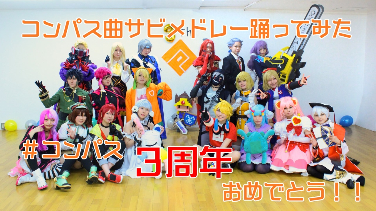 <br><br><span style="color: #e69138; font-size: 24px;">#コンパス三周年おめでとうございます!!</span><br><br><br>三周年のお祝いの日に合わせて<br><br>今までに実装されてきた<br><span style="color: #ff9900;"><strong>コンパスオリジナルヒーローの曲をサビメドレーにしてコスプレして踊ってみました!</strong></span><br><br><br>コンパスに感謝と祝福を込めて精一杯踊りましたので、最後まで見ていただけると嬉しいです!<br><br>※踊る関係上装備を軽くしている場合があります<br>※コンパスが好きな人で集まって作った動画です。その為ダンス初心者がおります。<br>※曲はありますが、居ないキャラクターもいます。ご了承ください。<br>※誹謗中傷や原作ゲームに迷惑のかかるコメントはお止めください。<br>※最後まで是非暖かい心で視聴をお願いします。<br>※一部オリジナル振付です。<br>※他の動画サイトへの転載は厳禁です。<br><br><br>お詫び<br>※トマスの曲の歌詞が編集ミスしたままになっておりました。申し訳ありません。<br>※きららの画面にて動画投稿サイト風のフレームがついておりますが、ハッシュタグの名前表記が訂正されておりませんでした。<br><br>合わせましてお詫び申し上げます。<br><br>メンバー<br><br>十文字アタリ:いがらし<br>リリカ:千笑<br>双挽乃保:あゆたふ<br>桜華忠臣:じょんどぅ(百禁)<br>ジャンヌダルク:95<br>マルコス’55:ちょこ<br>ルチアーノ:よもぎさん。<br>深川まとい:RyuZe<br>グスタフハイドリヒ:シロ<br>二コラテスラ:M@rimo<br>ヴィオレッタノワール:澪紗うりん<br>コクリコットブランシュ:瑠華<br>マリア=S=レオンブルク:みとは<br>アダム=ユーリエフ:寒身すうき<br>13 †サーティーン†:かのこ<br>かけだし勇者:シロ(製作)<br>メグメグ:寝葉月<br>輝龍院きらら:りっか<br>ソーン=ユーリエフ:みけ<br>デルミント鬼龍デルミン:甘味まかる<br>トマス:りべろ<br><br>お手伝い:アオト<br>撮影:蝶<br><br>企画.構成.音源及び動画編集:じょんどぅ(百禁)<br>企画についての連絡先@100xxxx001<br>